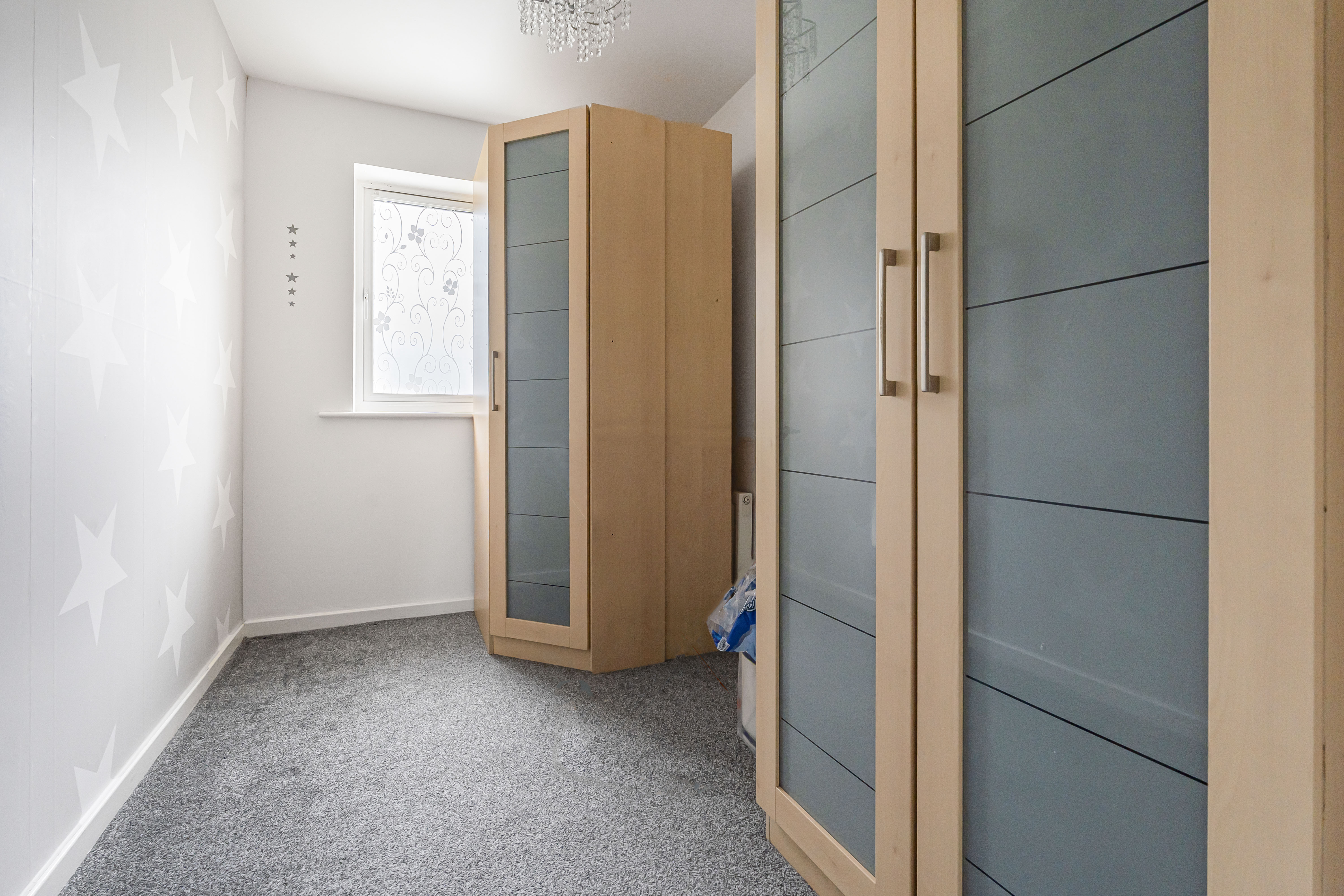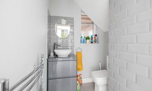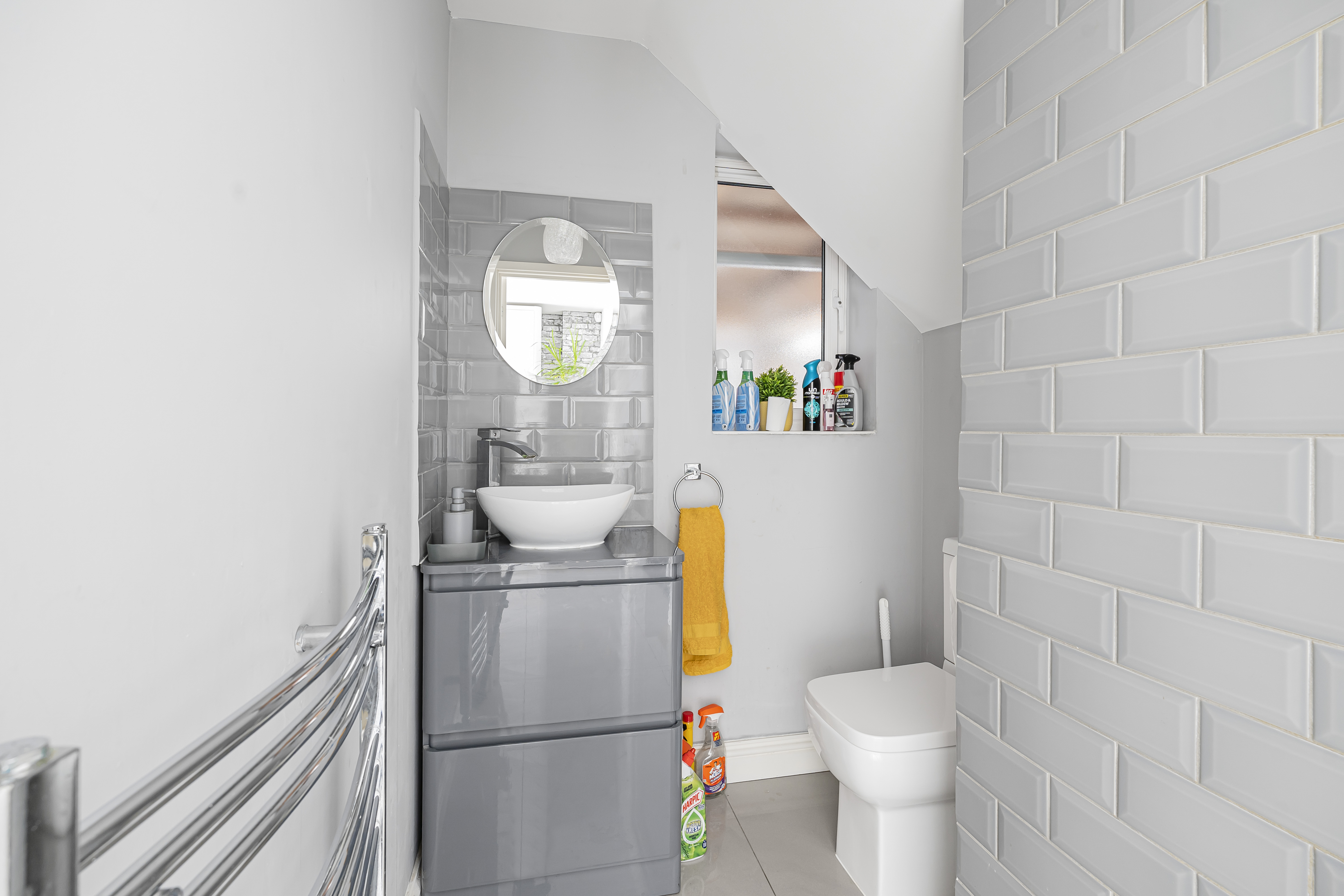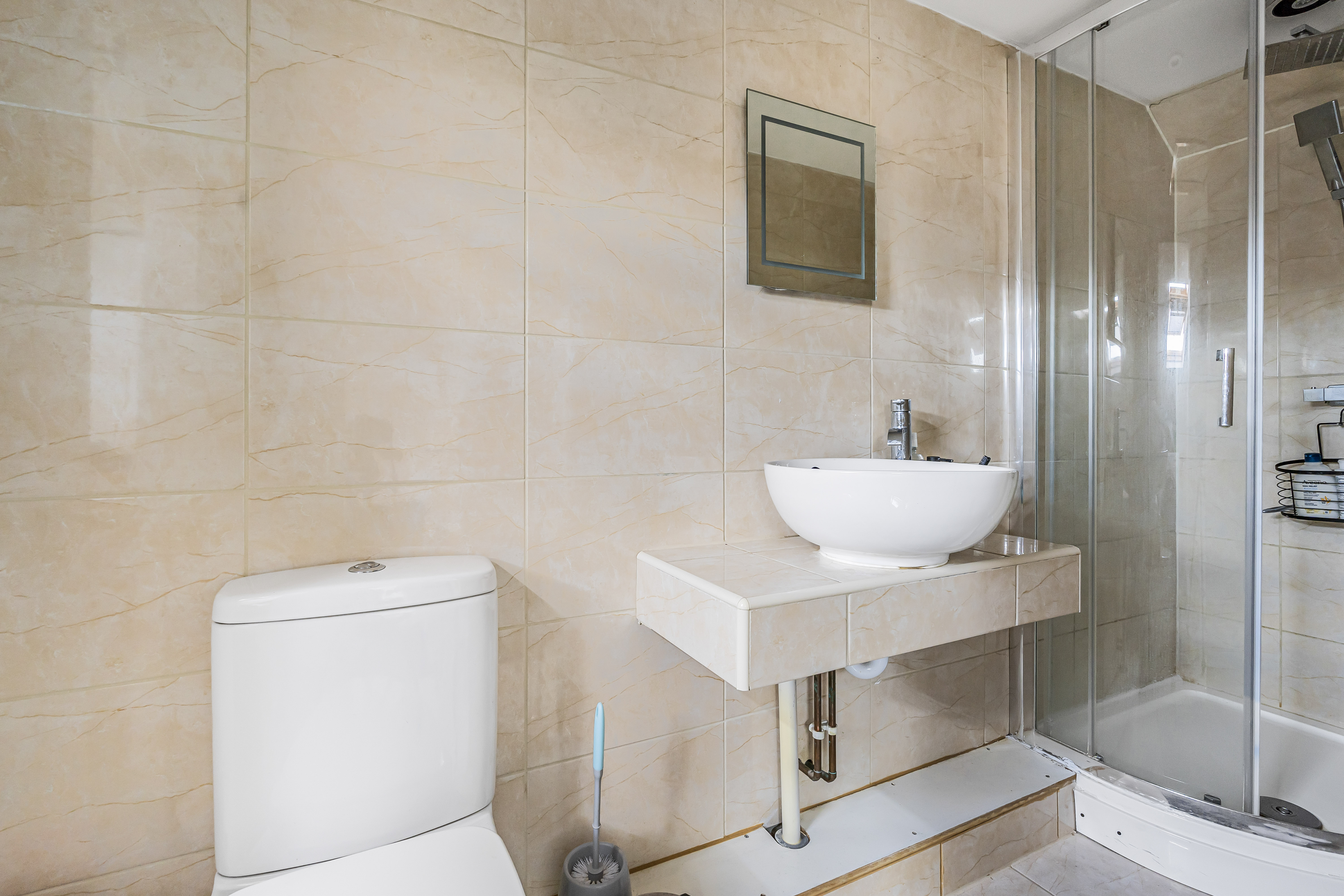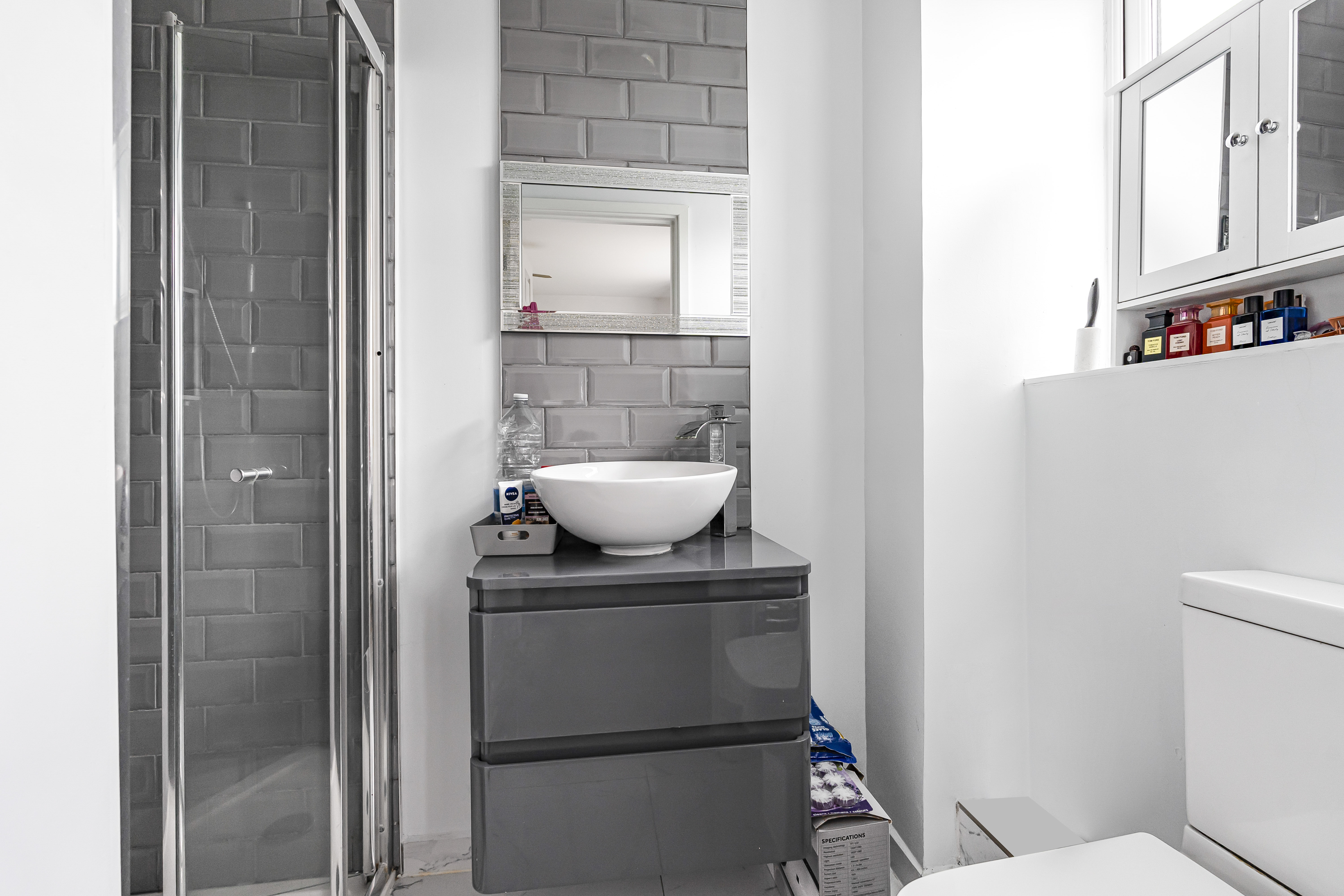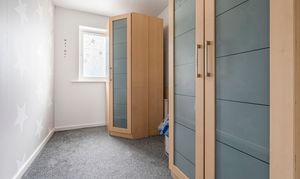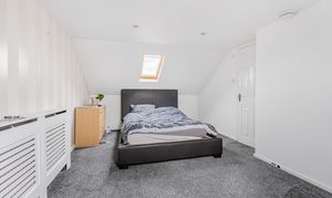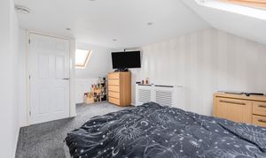 Fitted with a three piece suite comprising corner shower cubicle with independent shower over, rainfall shower head and separate shower attachment, wash hand basin and a close coupled WC. Open to a small dressing area with a roof window to the rear and hanging rails.