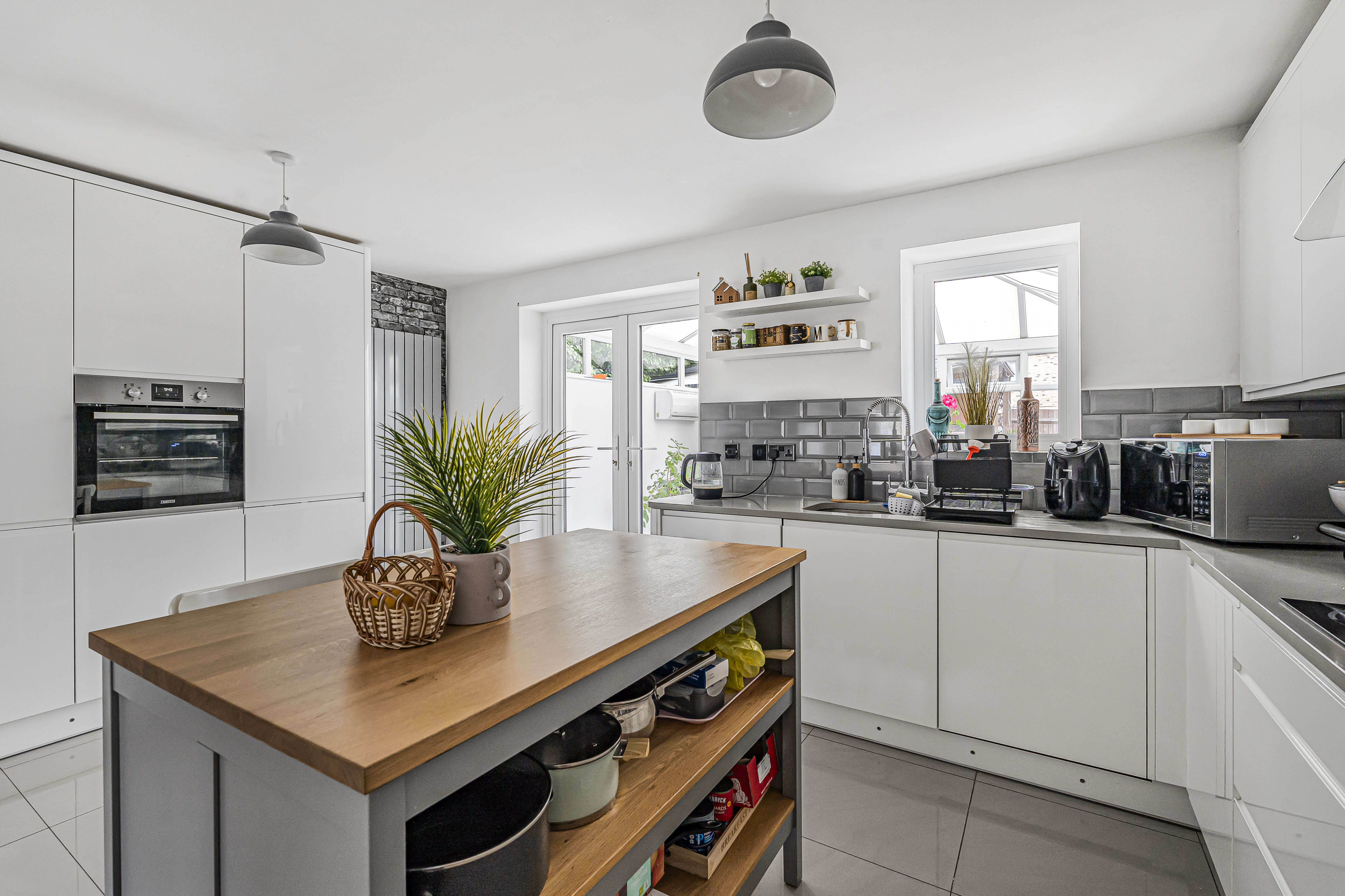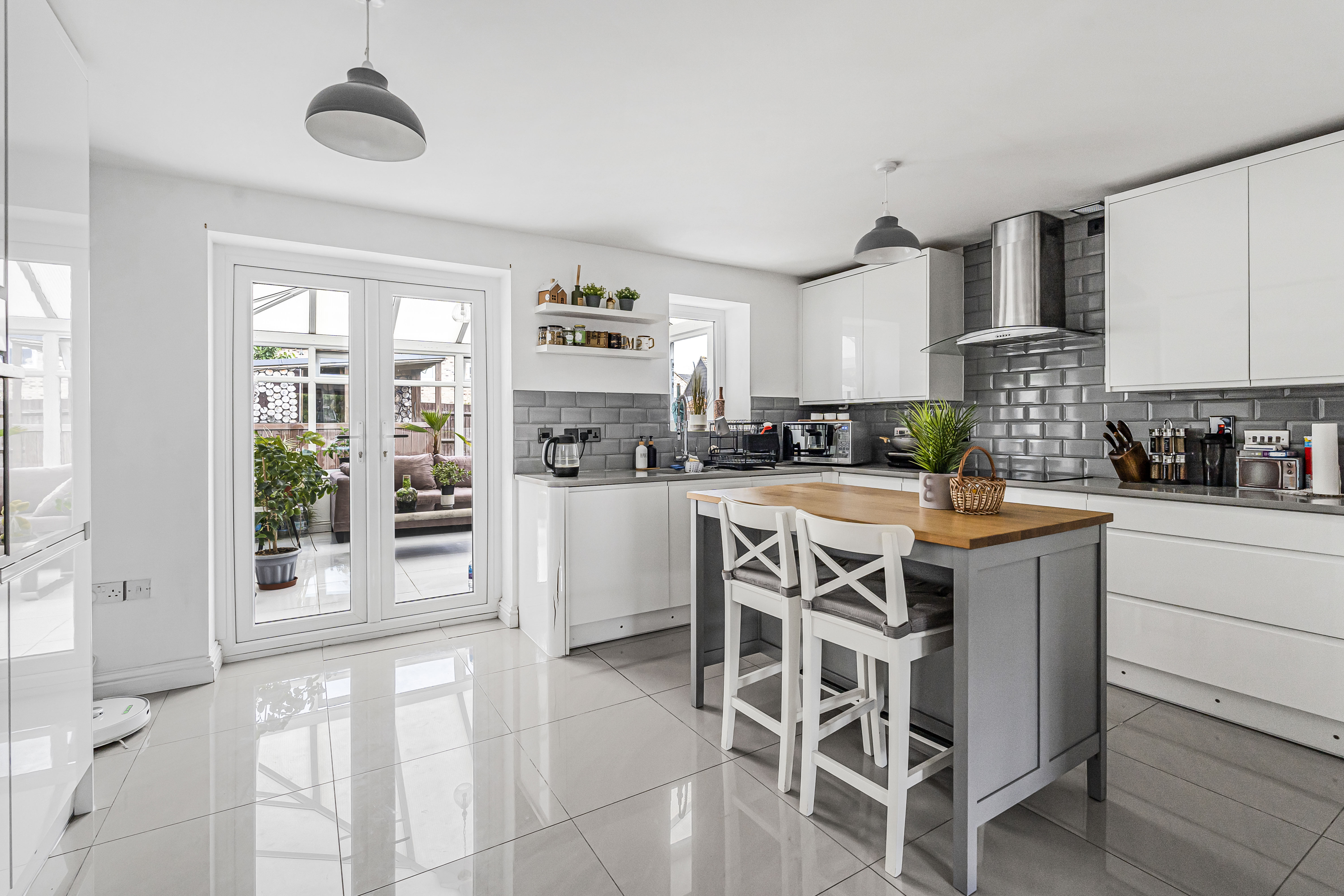 Deceptively spacious, the accommodation is well presented throughout with sociable ground floor starting with a living room then leading through to a high specification kitchen / breakfast room with integral appliances, a central island and a number of cupboard units and solid quartz worktops. Doors lead into the conservatory which has air conditioning and a pitched roof with access into the garden, great for entertaining or family time.