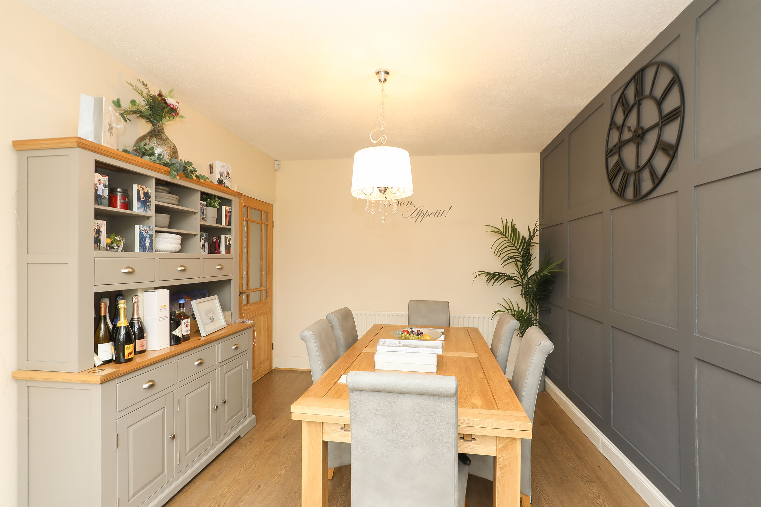 You’re welcomed into a light and airy entrance hall, which seamlessly leads to generous living spaces. The contemporary dual-aspect kitchen provides plenty of room for day-to-day cooking and features a stylish, modern design. It’s accompanied by a spacious separate dining room, the ideal spot for entertaining friends and family, with sliding doors opening onto the rear garden, filling the space with natural light.