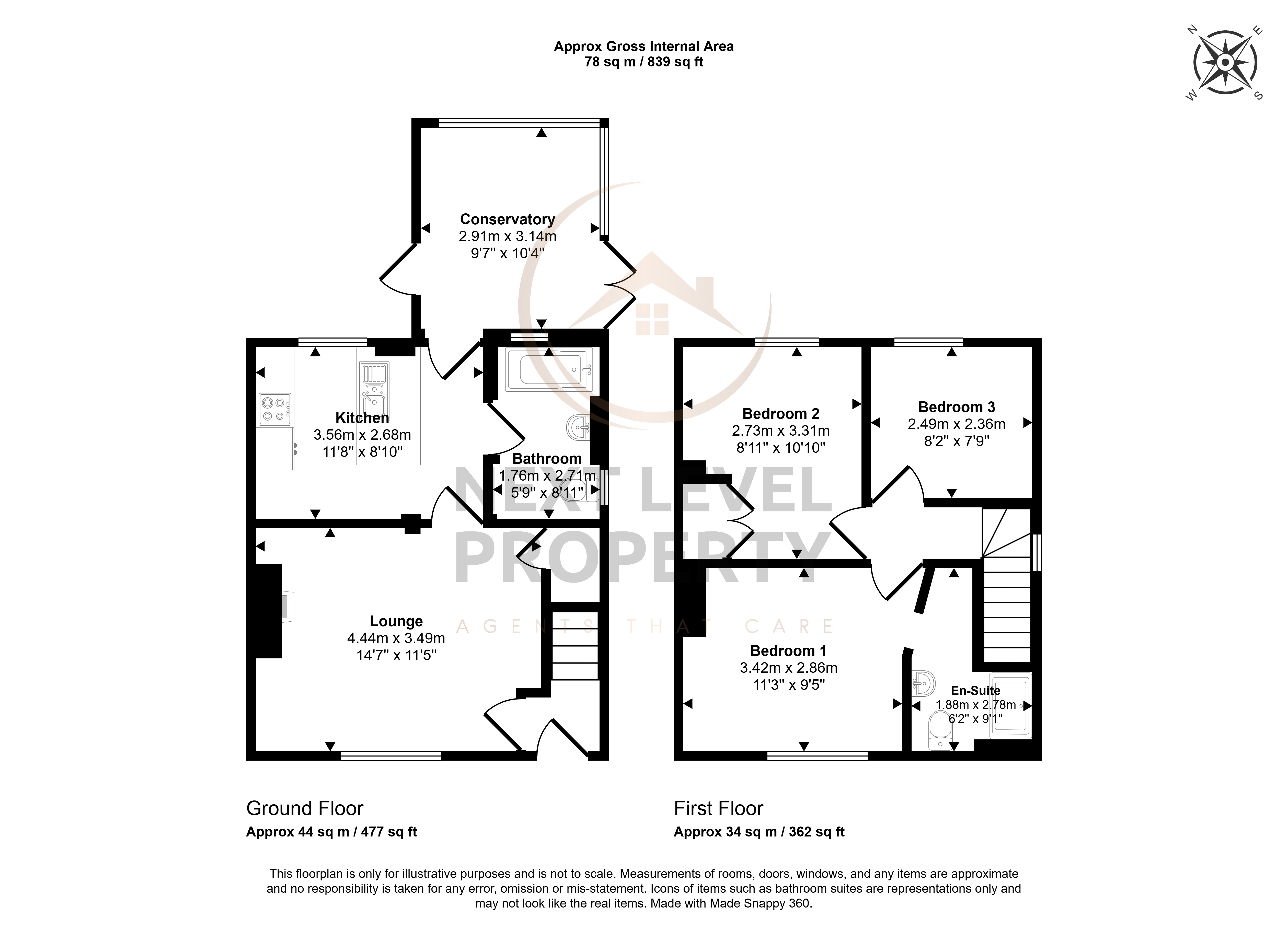 Inside, the accommodation is both comfortable and well laid out. The lounge provides a welcoming main living space, centred around a feature open fireplace, while the kitchen is well-equipped with fitted units, integrated cooking appliances, and a useful breakfast bar for more casual dining. From here, the layout flows through to a bright conservatory, offering an additional reception space that connects seamlessly with the garden—perfect for relaxing or entertaining.
