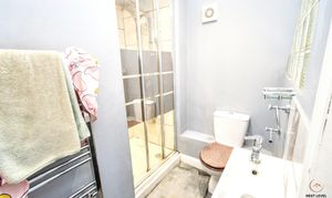 Bedroom one is a comfortable double room positioned to the front, with a UPVC window allowing for plenty of natural light. The room benefits from its own en-suite shower room, fitted with a shower cubicle, hand basin, WC, and a heated towel rail, adding a touch of everyday convenience.