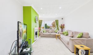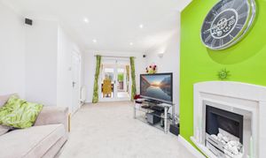 Carpet flooring, gas fire with marble effect surround, ceiling spot lights, double glazed uPVC window, x2 panel radiators.