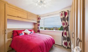 Double bedroom with carpet flooring, fitted furnishing, double glazed uPVC window, panel radiator.