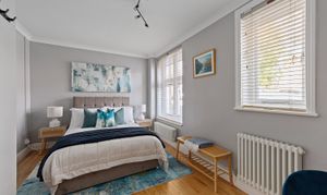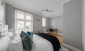 There are three bedrooms arranged off the hallway. The principal bedroom is particularly generous and benefits from windows on two sides, giving it a good amount of natural light. Bedroom two is another comfortable double, while the third bedroom works well as a study, nursery or guest room depending on how the space is needed, they are all generous double rooms, which is rarely found.