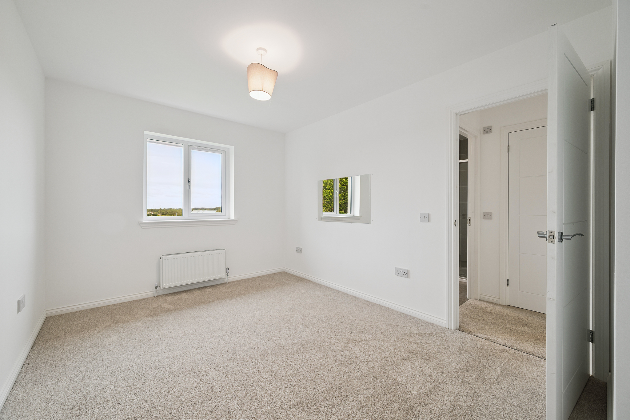 Upstairs, the principal bedroom is an inviting retreat, complete with fitted wardrobes as standard and an en-suite shower room with a rainfall shower. One of its standout features is the elegant Juliet balcony, which floods the room with natural light and creates a wonderful sense of space, while offering views over the front of the property.