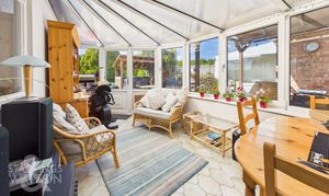 The annexe can be accessed from the ground floor snug with an inner hall finished with fitted carpet and built-in storage. Two bedrooms lead off the hall both finished with fitted carpet and front facing uPVC windows overlooking open fields with a range of built-in wardrobes. A family bathroom sits opposite with a five piece suite including a panelled bath and walk-in shower cubicle with useful storage under the hand wash basin, tiled walls and heated towel rail. The main sitting room includes a feature fireplace creating a focal point to the room with fitted carpet underfoot, double glazed sliding patio doors taking you to the rear garden and a door taking you to the kitchen. Fully fitted with a range of wall and base level units, and including integrated cooking appliances with an inset electric ceramic hob and built-in eye level electric oven, space is provided for a fridge freezer, dishwasher and washing machine. A door takes you to the conservatory entrance which allows for independent living within the annexe if required or a further seating area with tiled flooring underfoot and dual aspect uPVC windows.