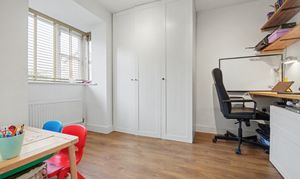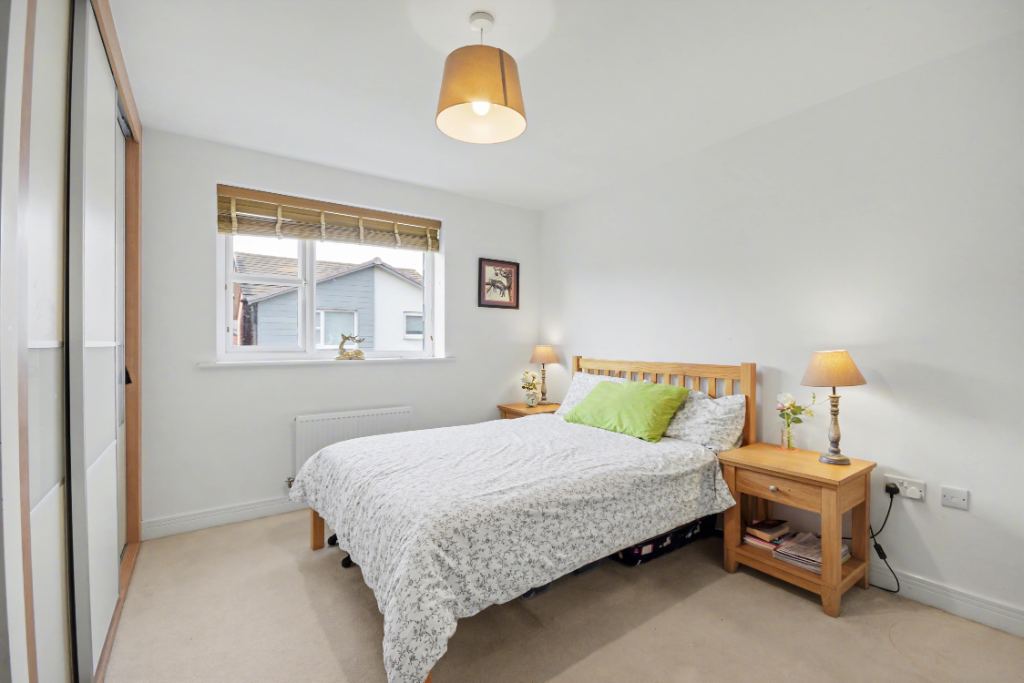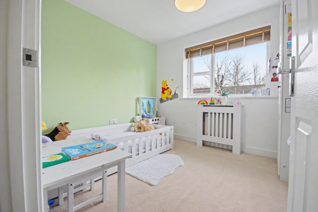 Located at the rear of the property overlooking the private garden. Neutrally decorated with a light green feature wall. Carpeted flooring, UPVC double-glazed window, and gas central heating radiator. Large enough to be a double bedroom, currently laid out as a child's bedroom.