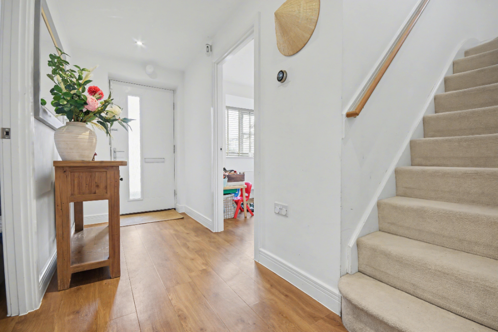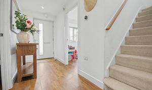 A good-sized entryway into the property featuring Amtico vinyl flooring and onward access to the kitchen, living room, study and stairs to the first floor.