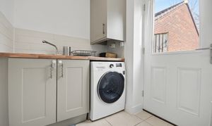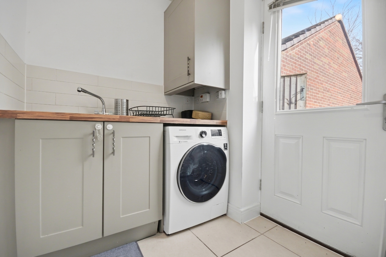 Features a sink with mixer tap, space for washing machine, and storage for utility items and cleaning goods. UPVC double-glazed door brings light into the room and allows further rear garden access. Accessed from the main kitchen diner, also housing the downstairs WC.