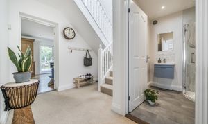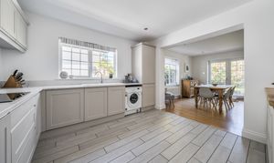 The stylish open-plan kitchen flows seamlessly into the principal reception room, creating an ideal space for entertaining, and with two sets of doors leading out to the rear garden. Flexible accommodation includes a ground floor bedroom with shower room/WC, plus a study that could serve as a fourth bedroom. Upstairs, two generous double bedrooms are complemented by a bathroom, with the rear bedroom enjoying far-reaching views towards the South Downs.
