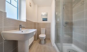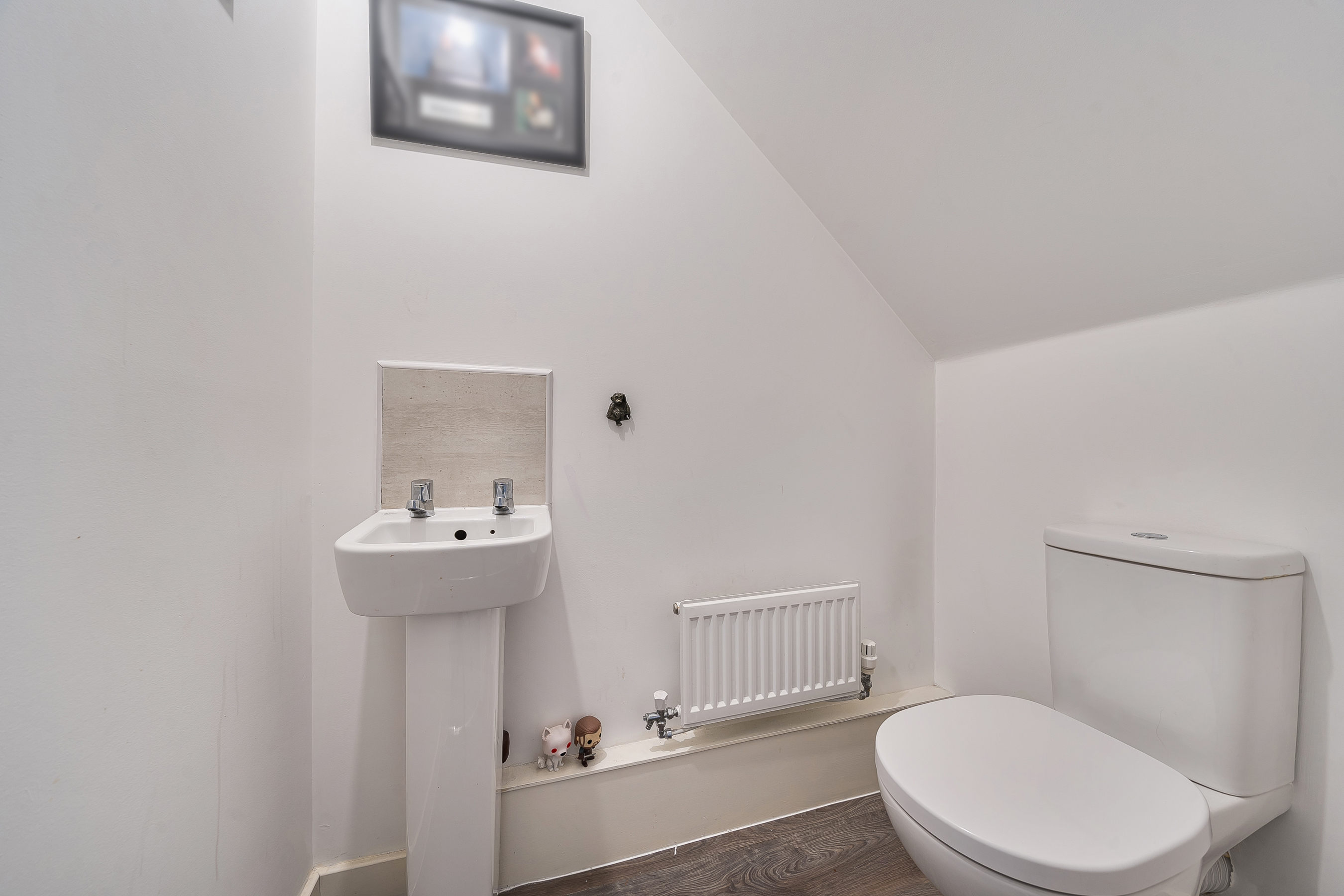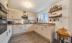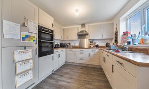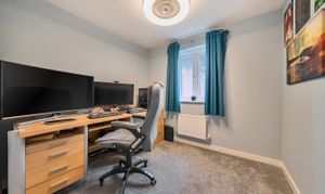 Upstairs, the light-filled principal bedroom includes a contemporary en-suite with walk-in shower. Three further well-proportioned double bedrooms are served by a family bathroom with an over-bath shower, while a fifth single bedroom also lends itself perfectly to use as a home office. Two additional storage cupboards complete the first-floor layout.