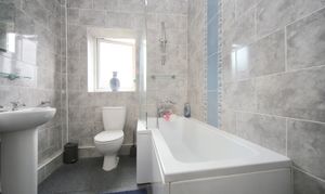 Upstairs, the accommodation continues to impress with a spacious main double bedroom, complemented by a second generously sized bedroom that could serve equally well as a guest room, nursery, or study. The family bathroom is well-proportioned and features a full-sized bath, providing a functional and comfortable space for everyday use.