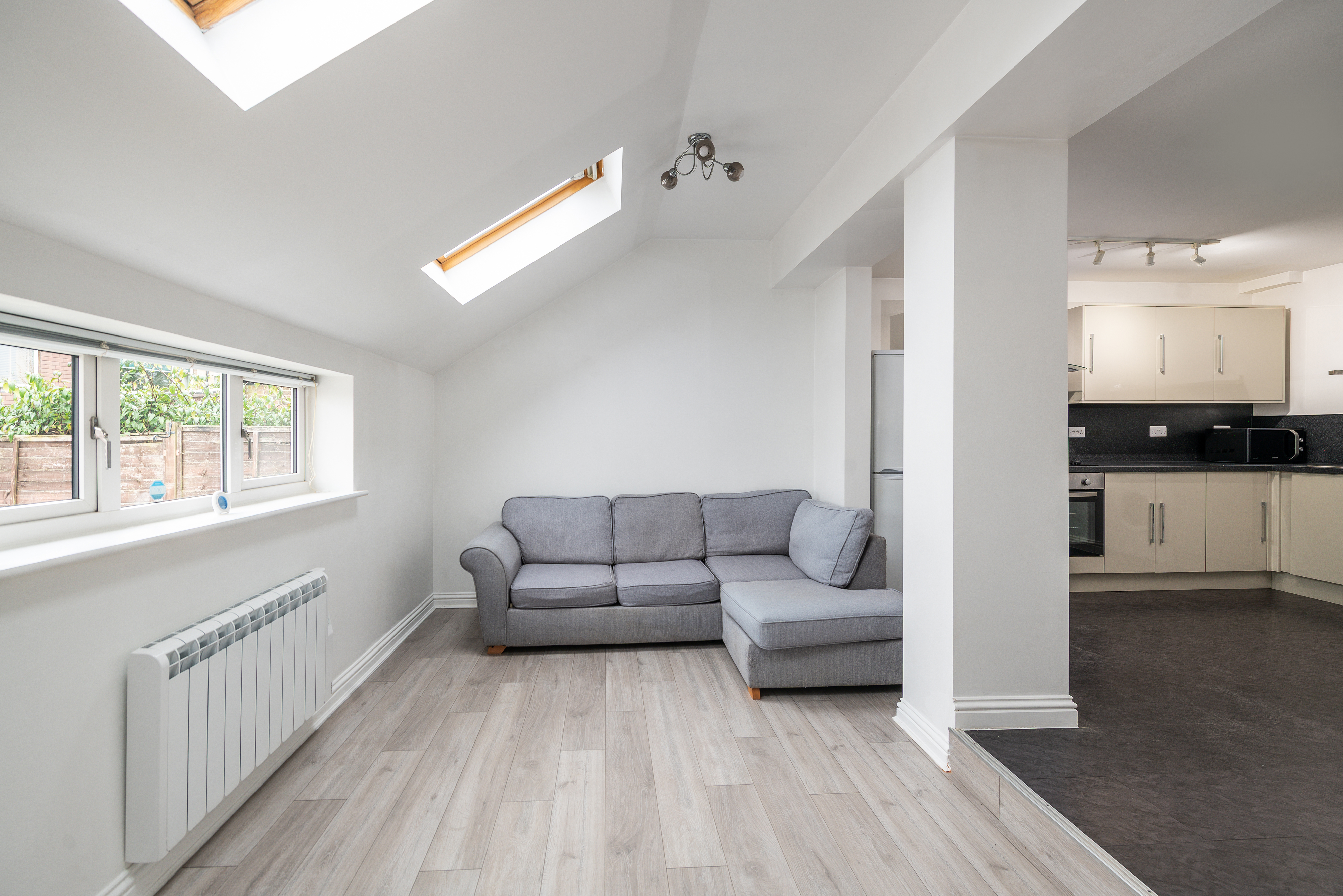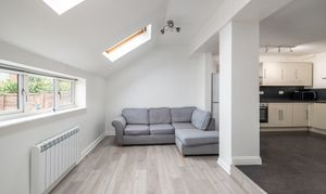 Converted to a high standard in 2014, the property is accessed via its own front door with porch opening into a spacious hallway leading to a large double bedroom, a family bathroom, and a bright spacious open plan living room and a separate well equipped fitted kitchen with ample space for dining. Externally there is a private rear garden, an allocated parking bay to the front and additional outside storage.