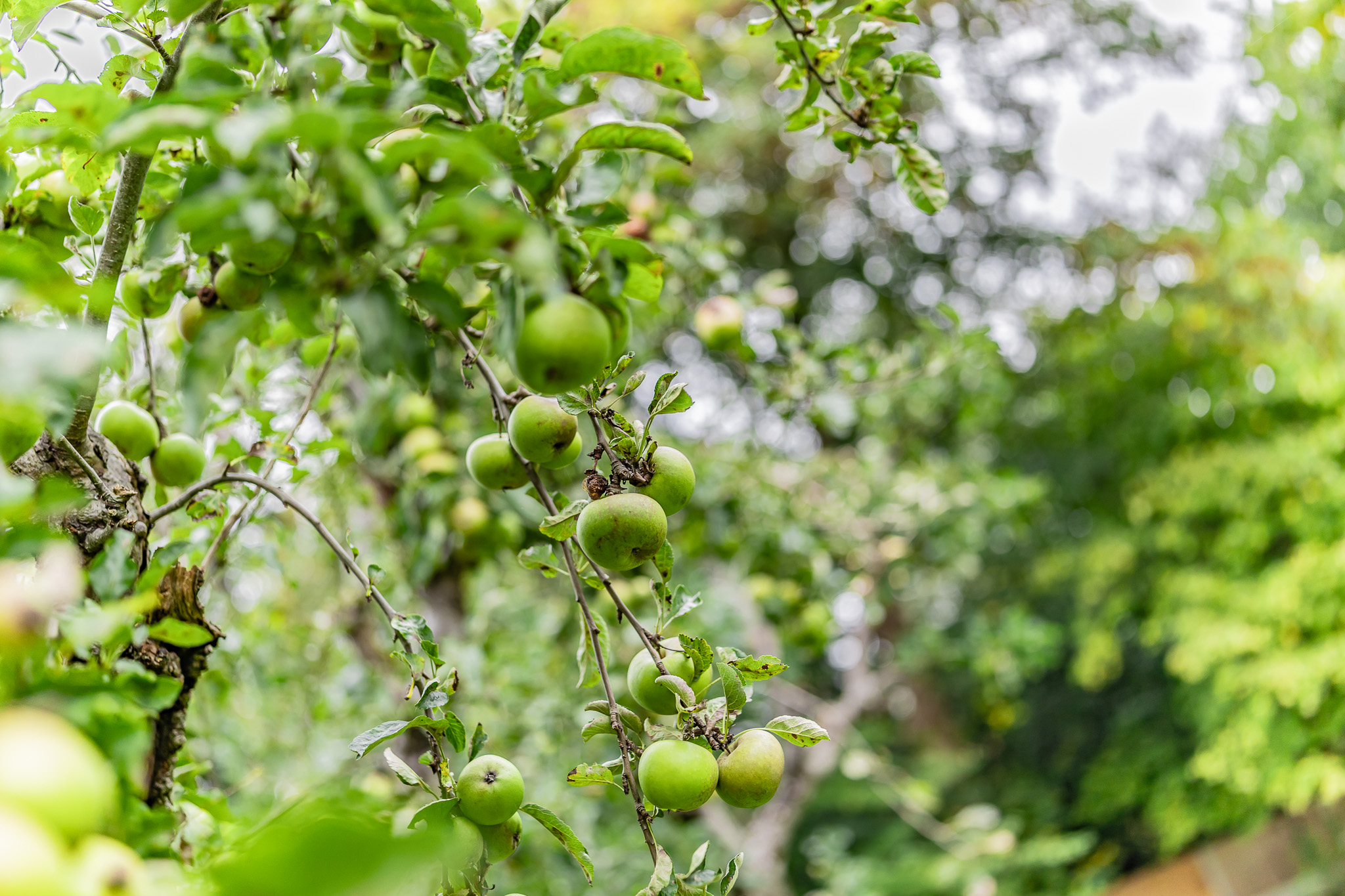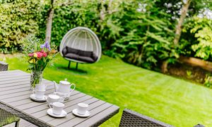 - Private, mature gardens with decking, lawn, courtyard seating area and apple trees.