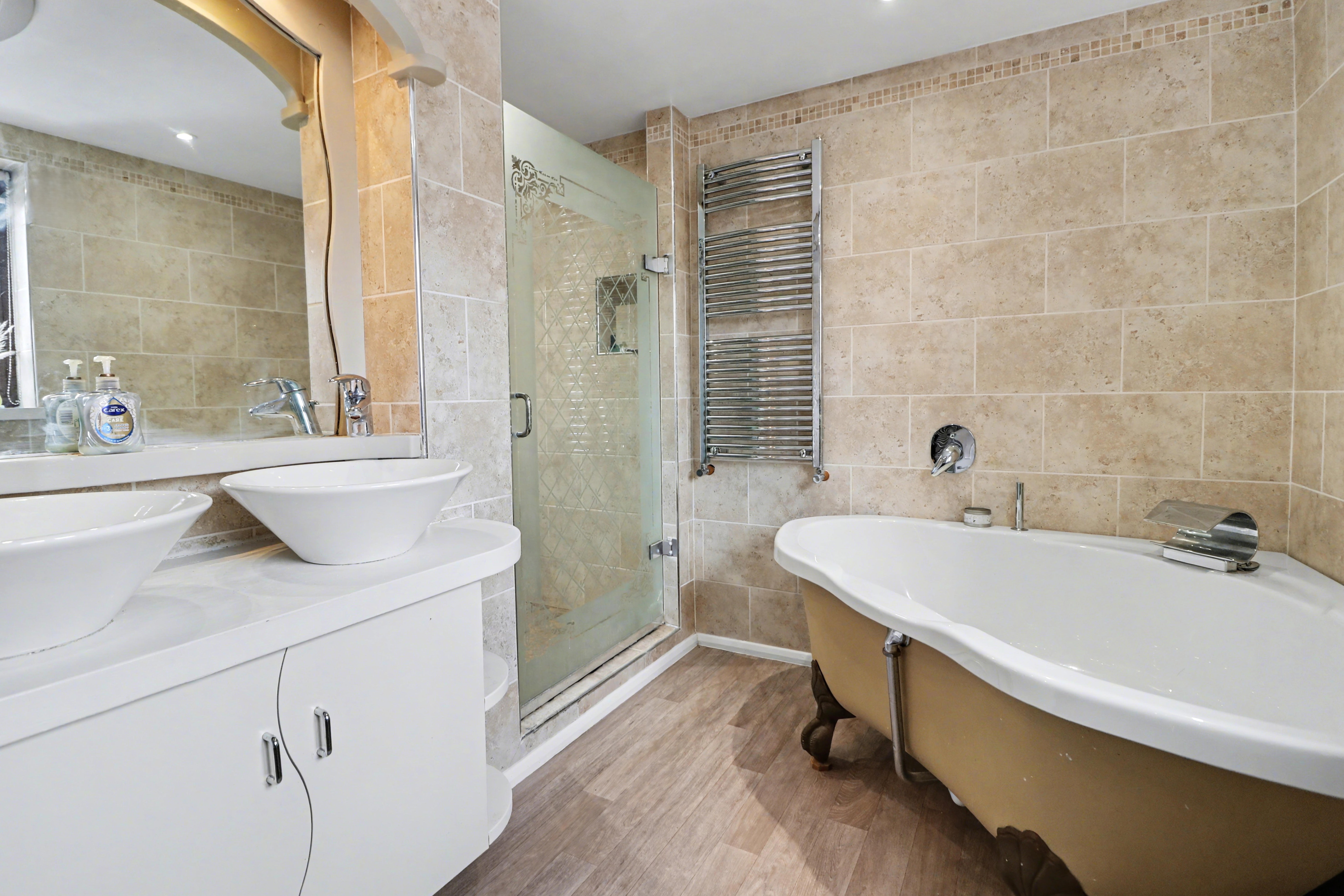 There are three further, well-proportioned bedrooms, two of which benefit from fitted wardrobes, whilst the large family bathroom is well-appointed with a double width shower cubicle and corner bath.
