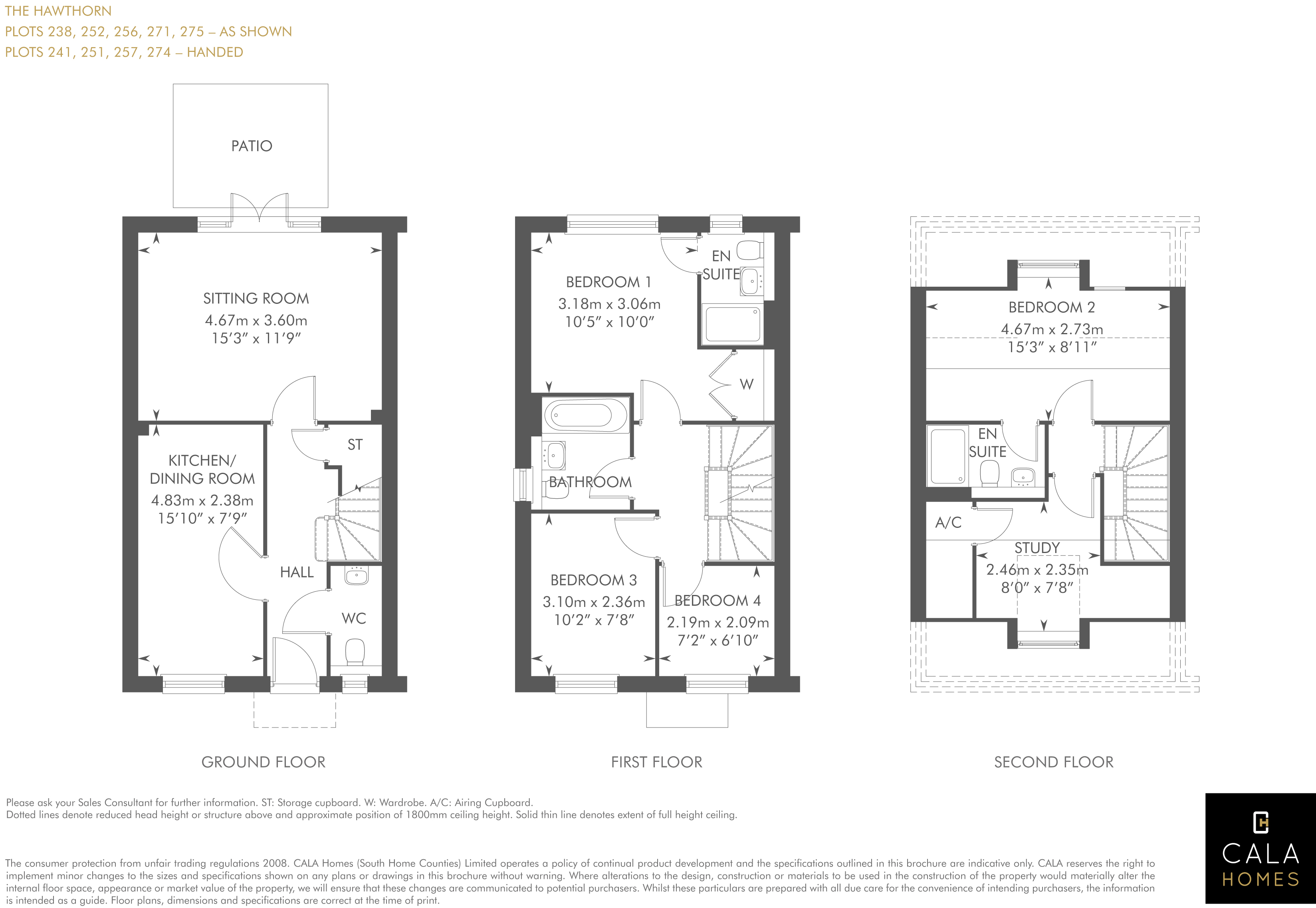 14 Osprey Drive (Plot 251 The Hawthorn) is a 4 bedroom three storey semi detached house with garage and 2 parking spaces. To the ground floor is a kitchen/dining room, living room with doors opening onto the patio and cloakroom. On the first floor there is Bedroom 1 with its en suite, Bedrooms 3 and 4 plus the family bathroom. Bedroom 2 with its en suite plus a study will be found on the second floor..