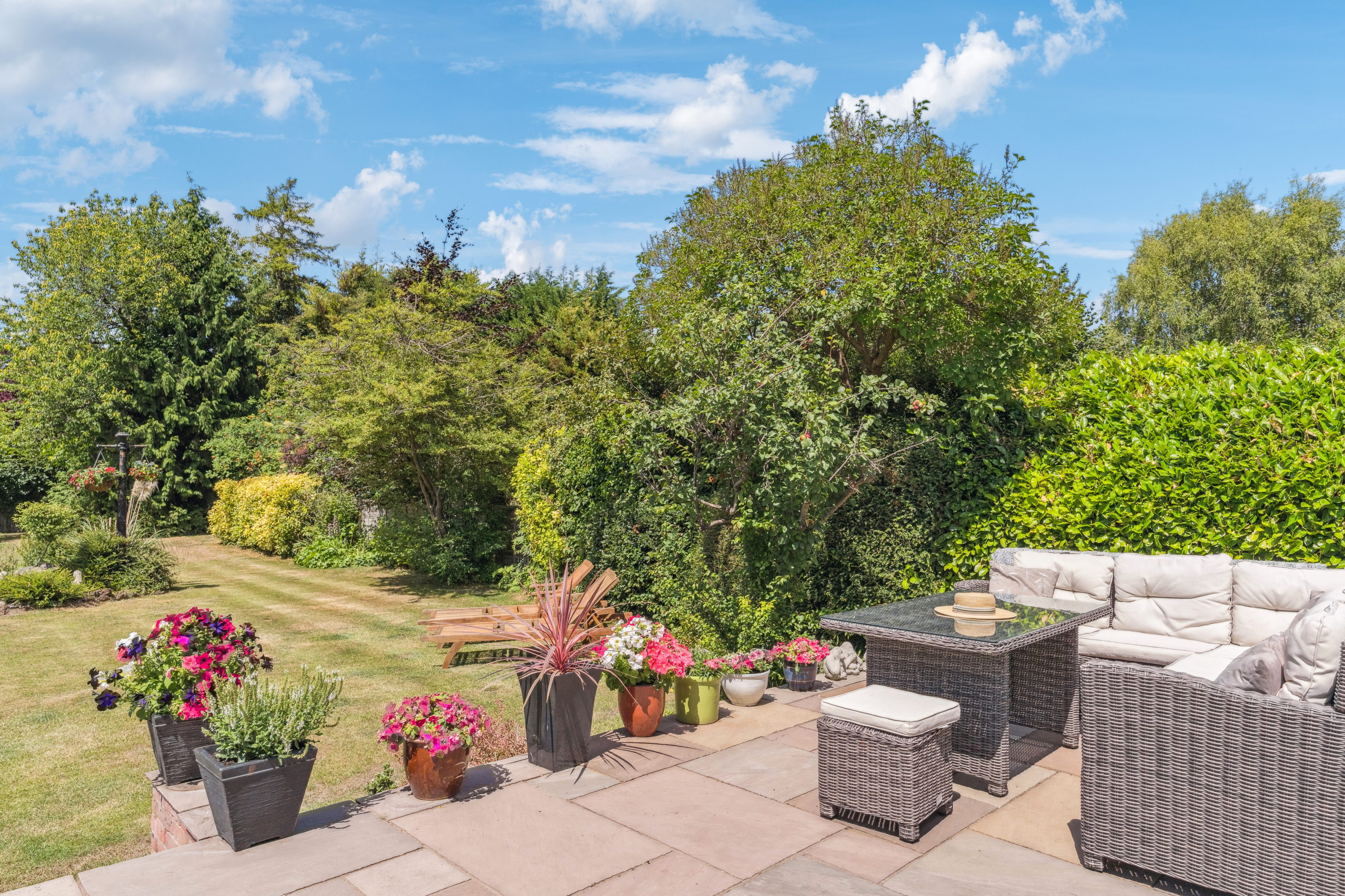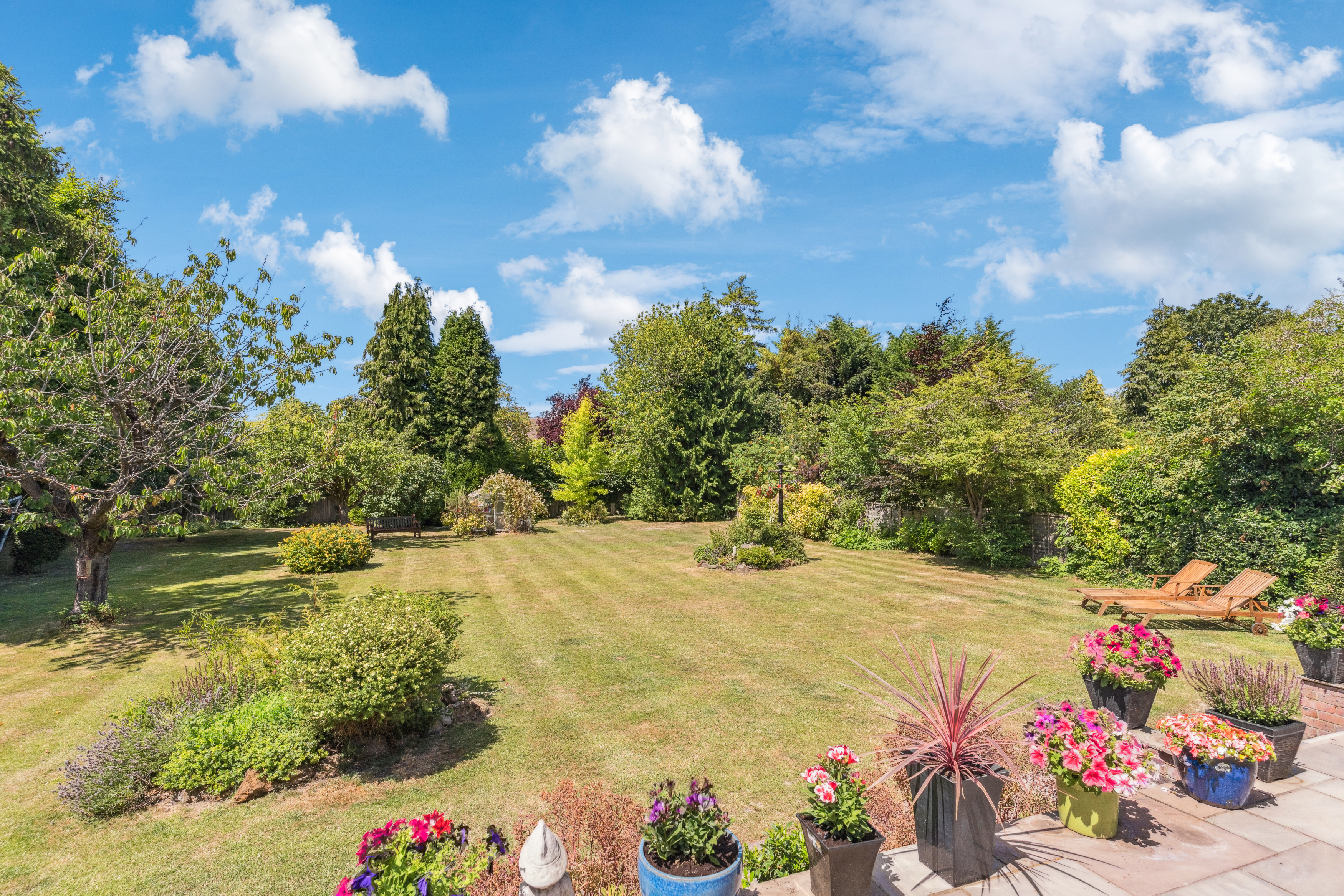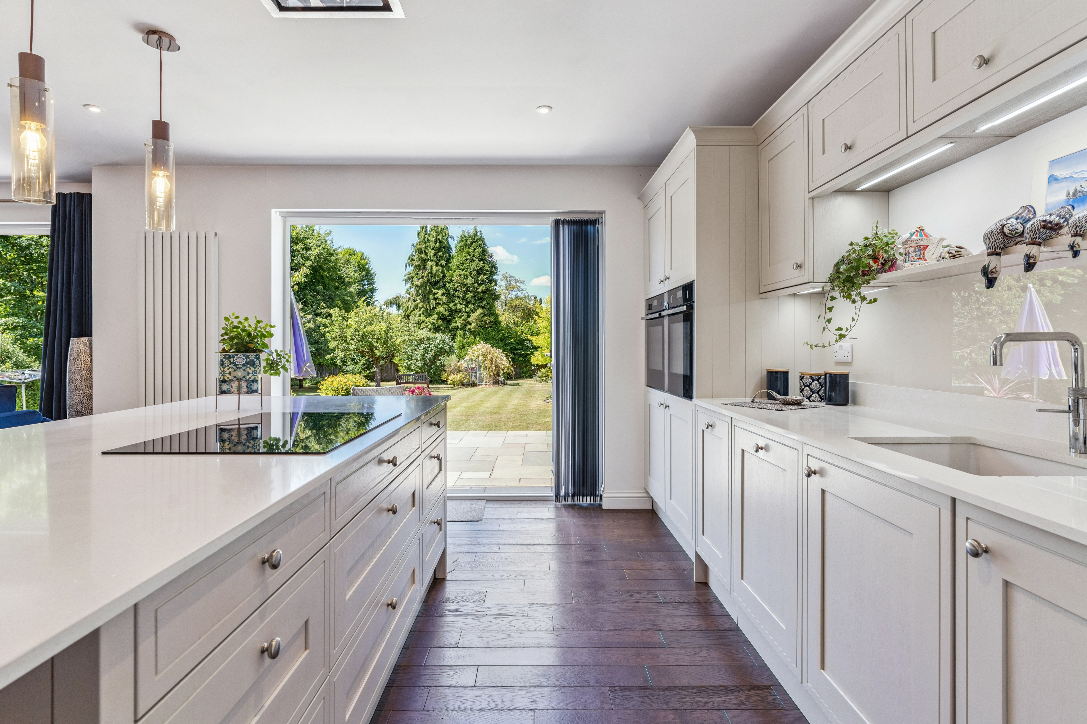 The large garden offers plenty of room for children to play, outdoor dining, or simply unwinding in a peaceful setting. With the property set on a double-width plot, there’s ample space to make the most of the outdoors.