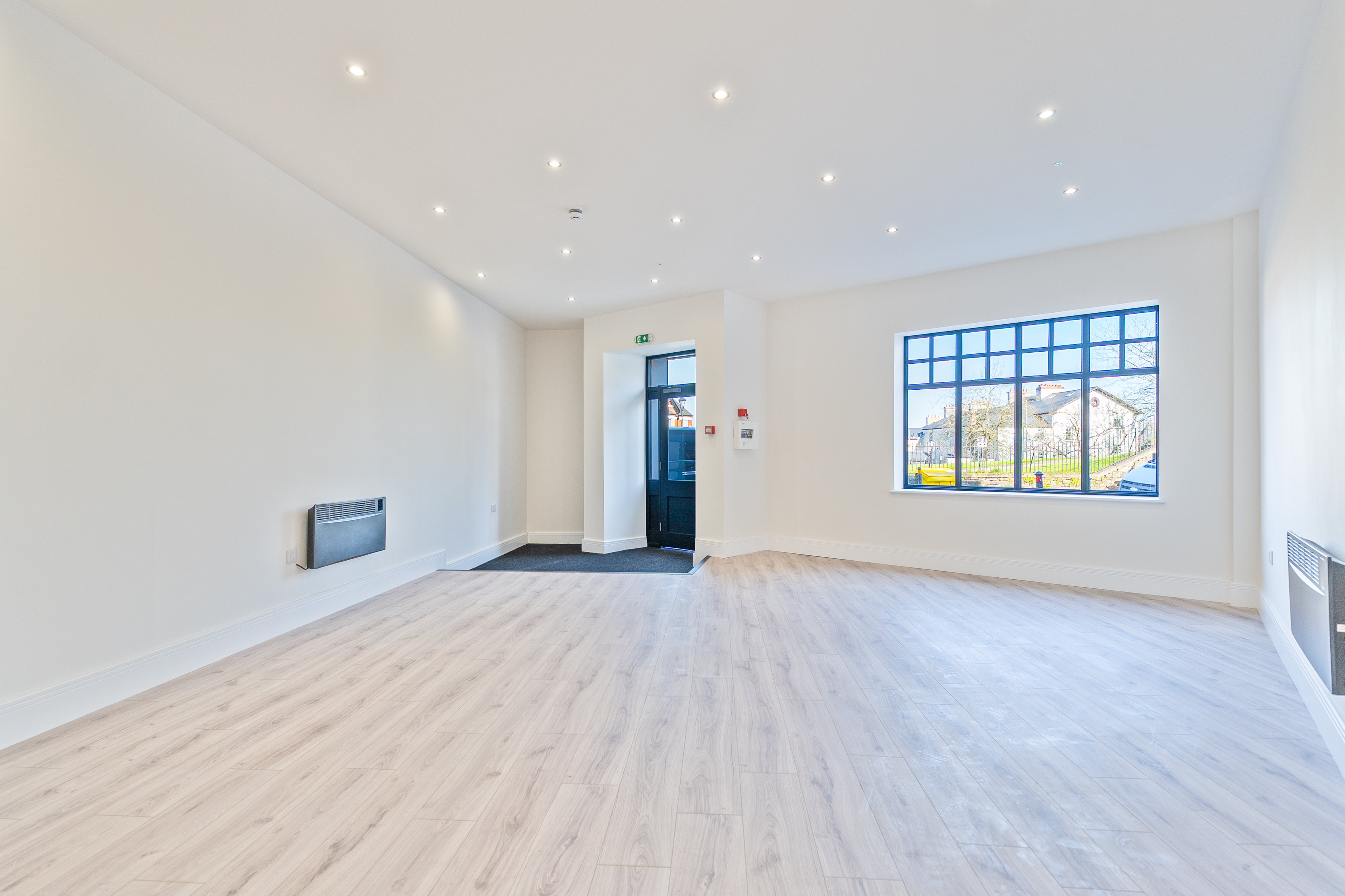 The property comprises a large commercial shop front space, providing a flexible and open layout suitable for retail, office or service-based businesses. The main area benefits from good natural light and a prominent frontage, ideal for display and customer access. To the rear is a private kitchen area, offering practical facilities for staff, along with a cloakroom, adding further convenience to the space.