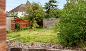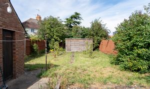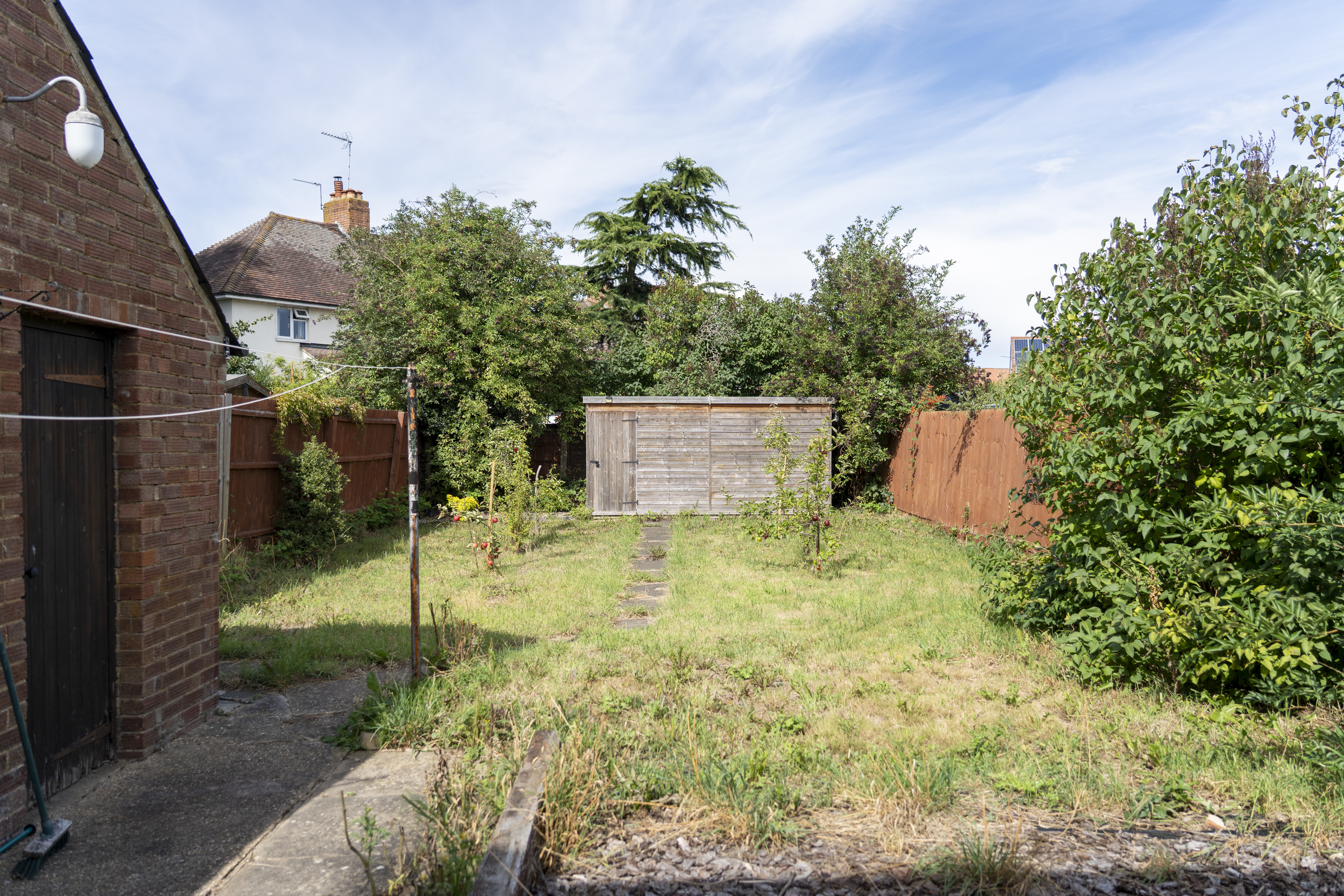 Good size rear garden, mostly laid to lawn. Brick built outbuilding and large shed.