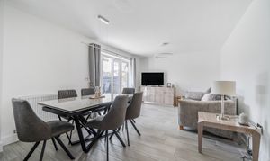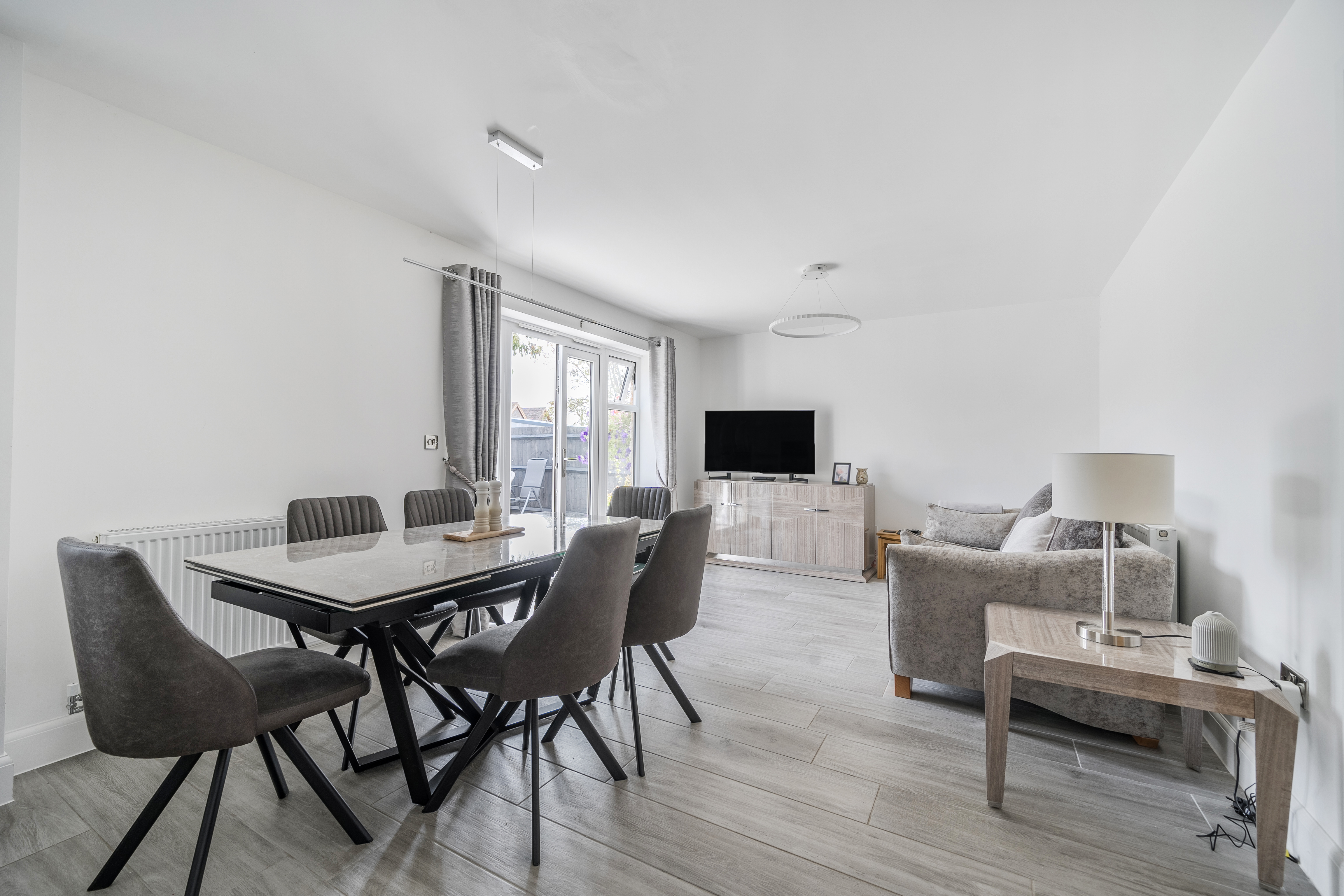 This room easily accommodates a large dining table and relaxed seating area, ideal for family life and entertaining. In addition, twin French doors open onto the rear garden, offering a seamless transition between indoor and outdoor living—perfect for summer gatherings or barbecues.