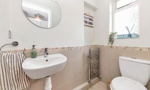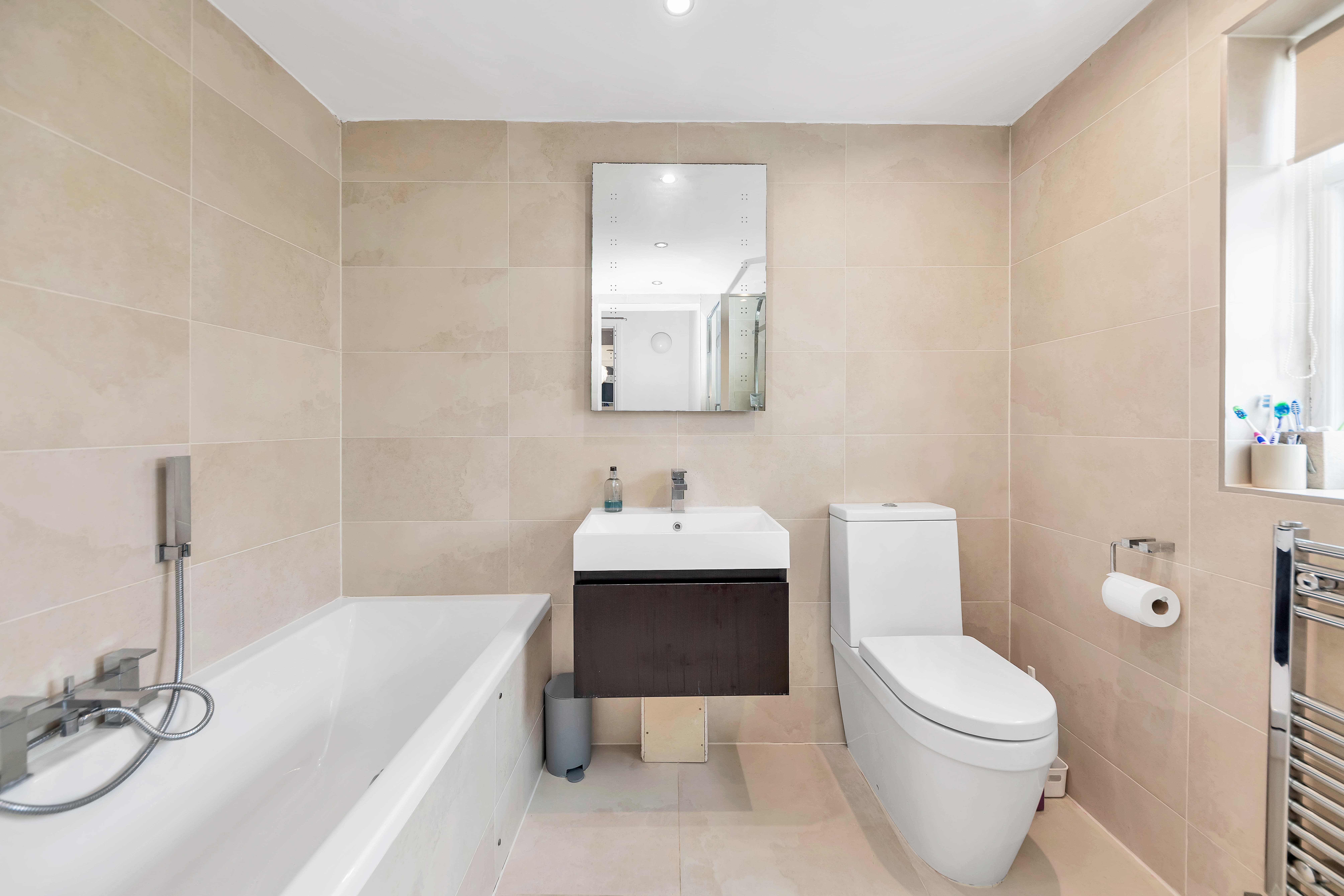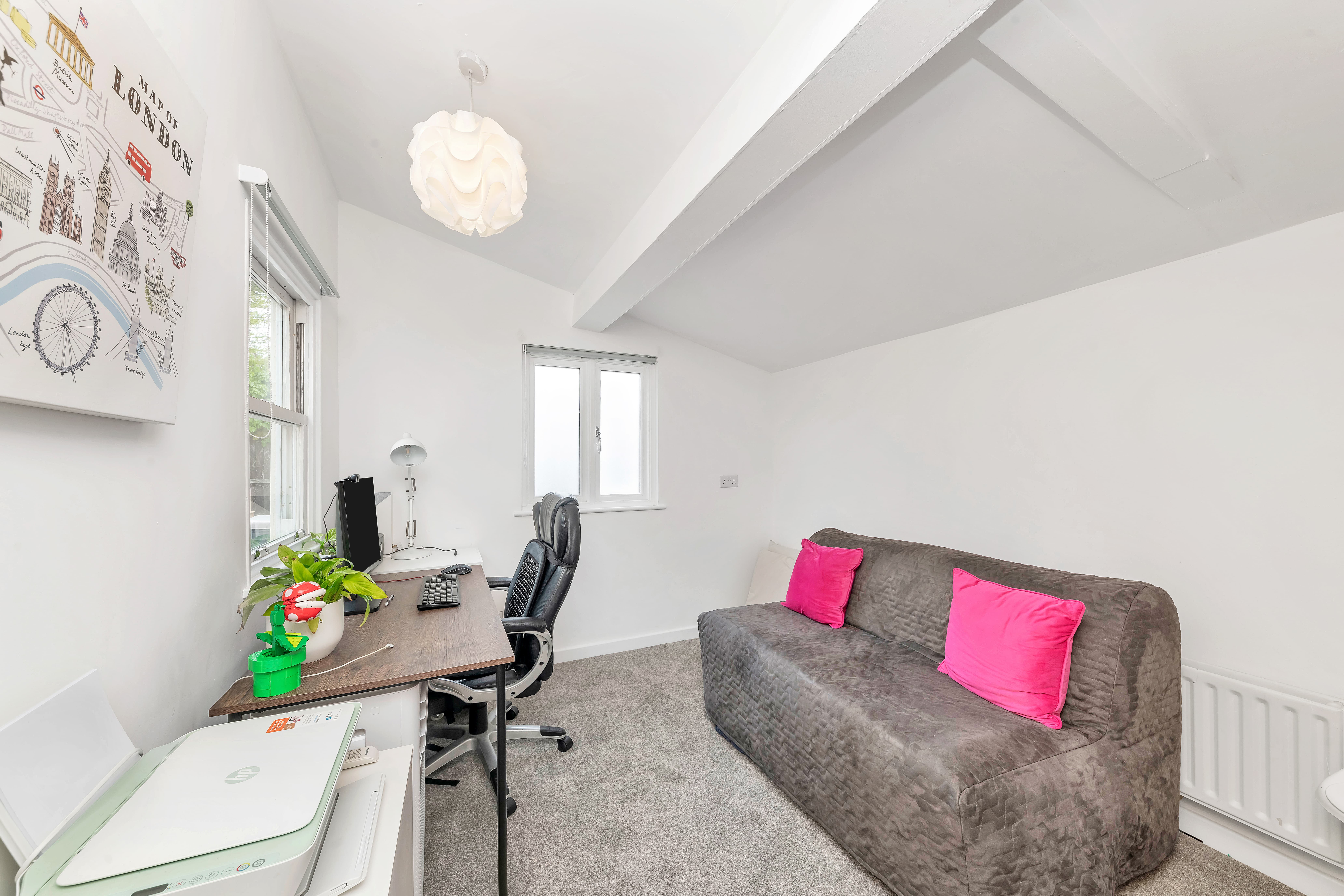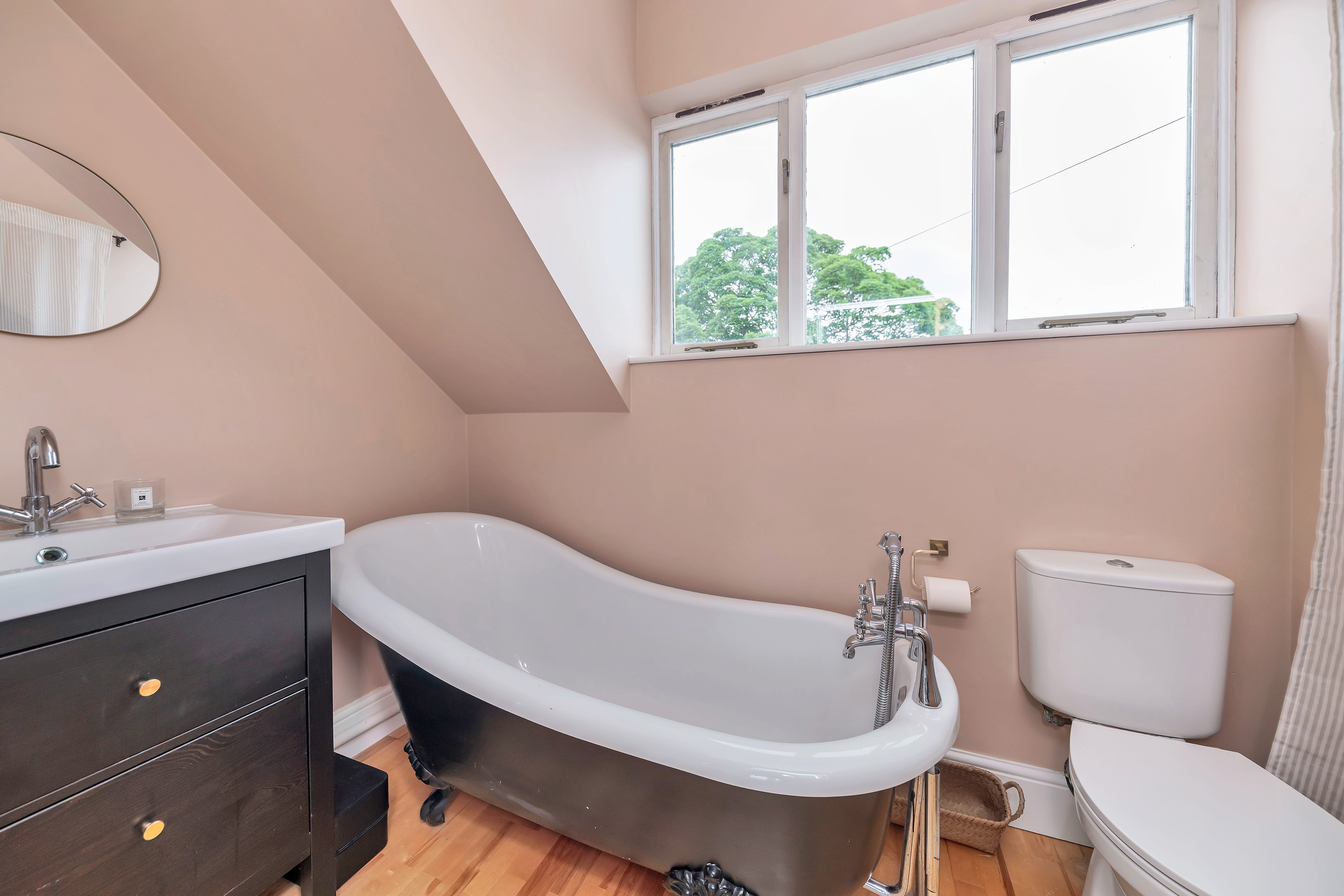 Outside, to the rear, the landscaped garden is a wonderful size, fully enclosed by fencing and offering a lovely private spot to sit and relax after a busy day. It is laid mainly to lawn, with paved patio and decking areas providing lots of space for garden furniture, enjoying meals and entertaining guests. There are well-maintained borders, with shrubs, mature trees and decorative stones, and access to a fantastic garden studio, with bi-fold doors into the garden, wood flooring, inset lighting and vast amounts of space for furniture/gym equipment.