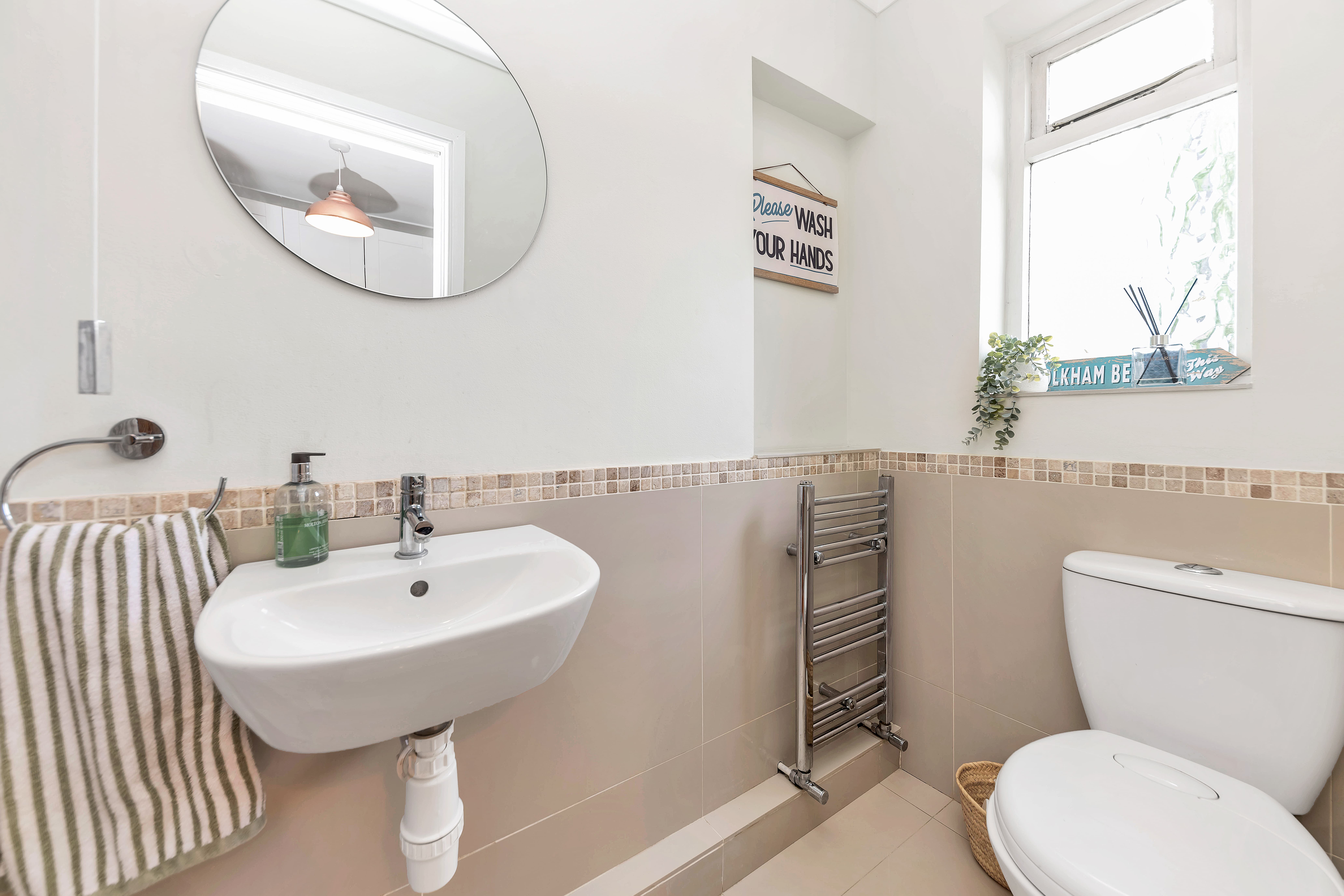The kitchen/breakfast room is a lovely size and has been beautifully designed, enjoying a window to a front aspect, an extensive range of modern base and wall units, quartz worktops, a breakfast bar, inset lighting, wood flooring, tiled splashbacks, a range cooker, an extractor hood, an integrated dishwasher, and space for other kitchen appliances. The utility room provides further storage, access to the side of the property, access to a cloakroom WC, and space for large laundry appliances.
