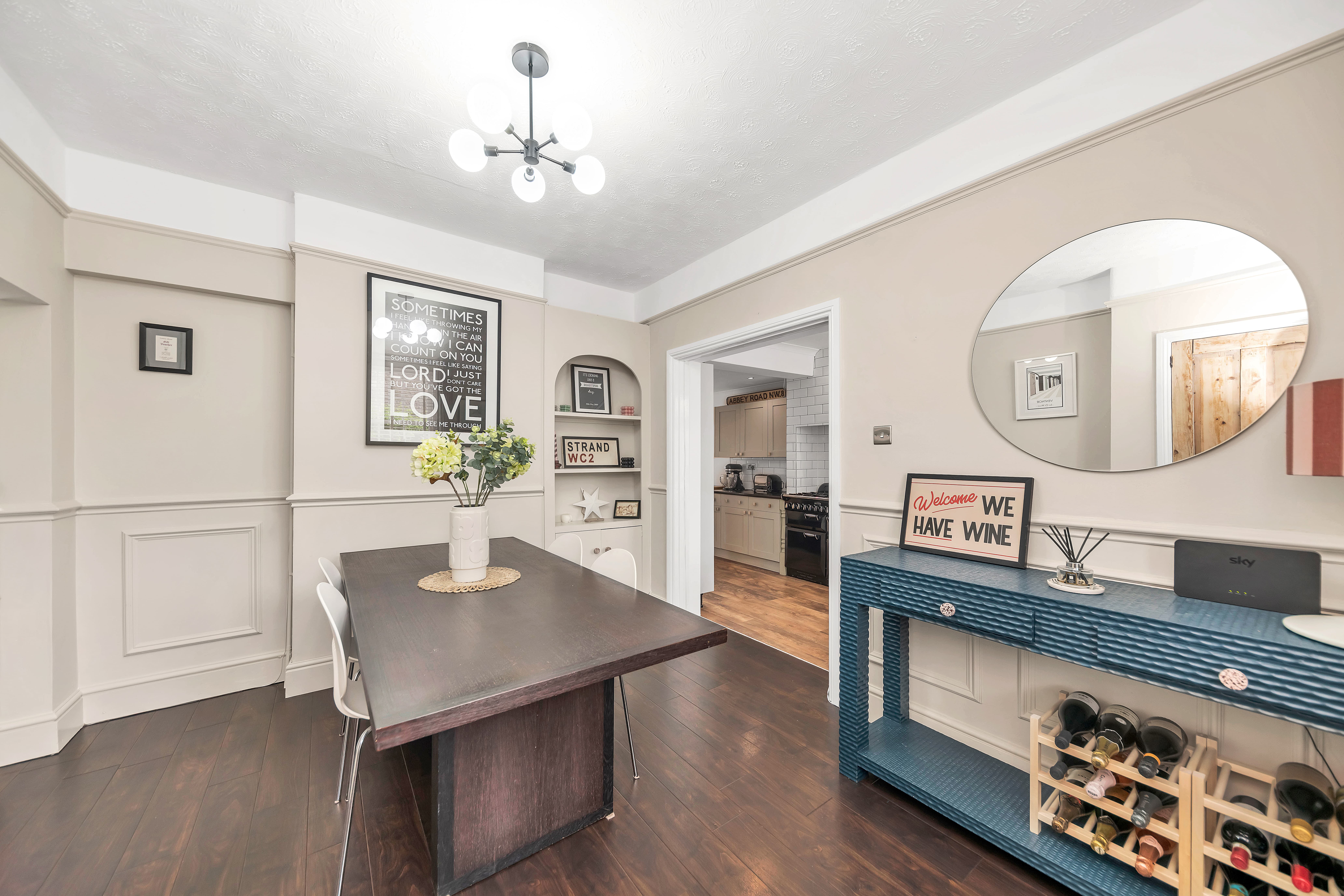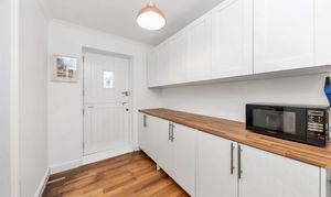 This spectacular detached family home enjoys excellent kerb appeal, with a unique and attractive frontage, front borders of decorative slate, plenty of space for potted plants, and gated side access to the rear. Upon stepping inside the front door, the entrance hallway enjoys wood flooring, pendant lighting, stairs to the first floor, and access through to the downstairs living space.