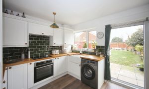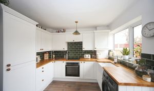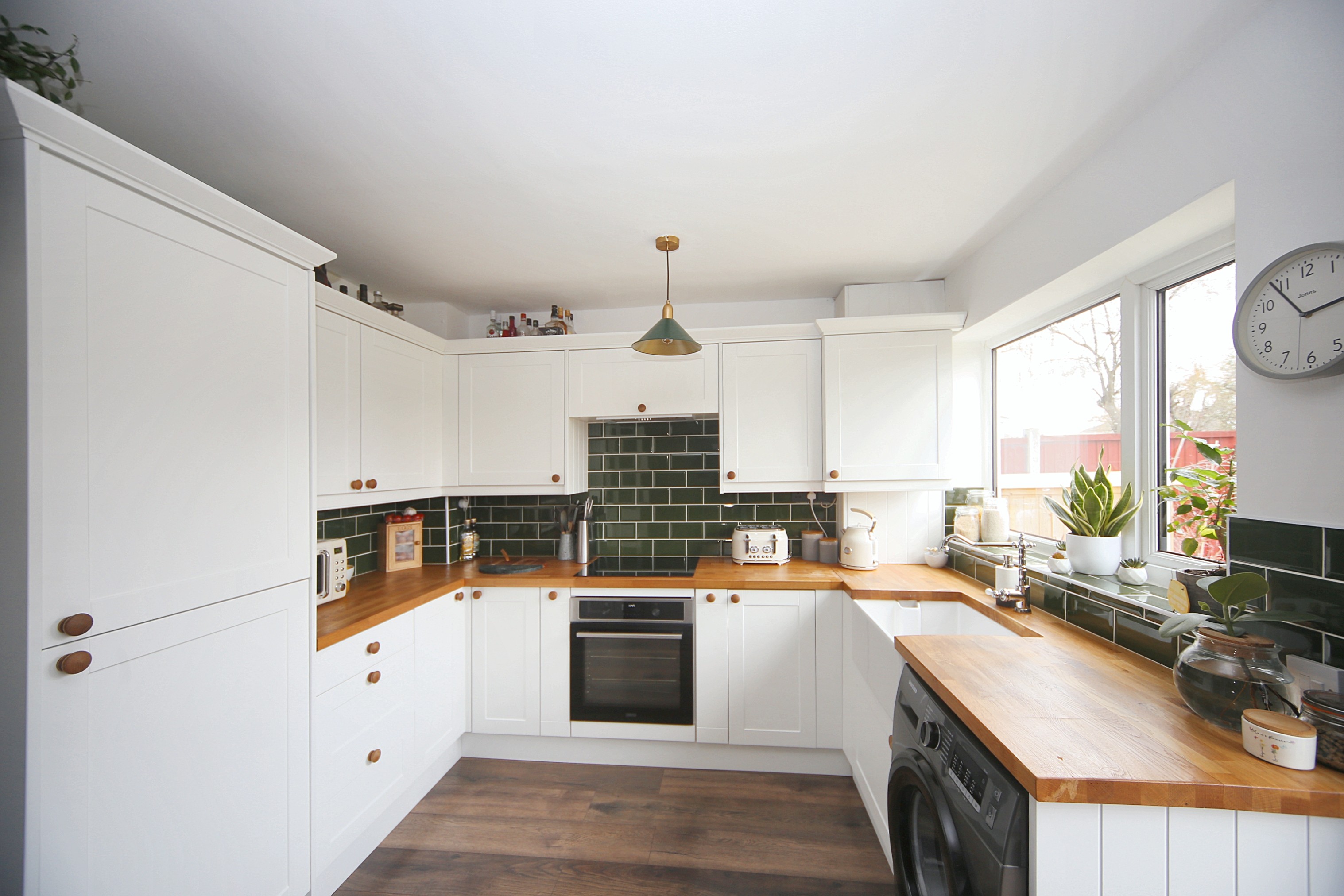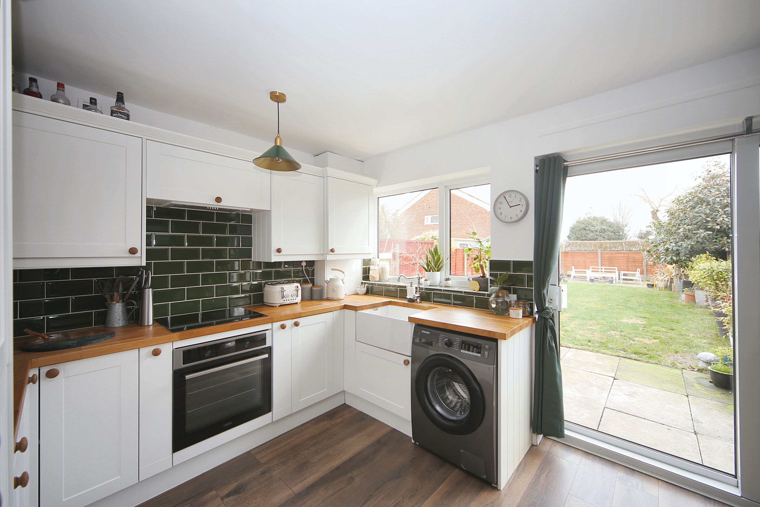 - Modern kitchen/diner: Belfast sink and French doors to garden.