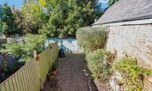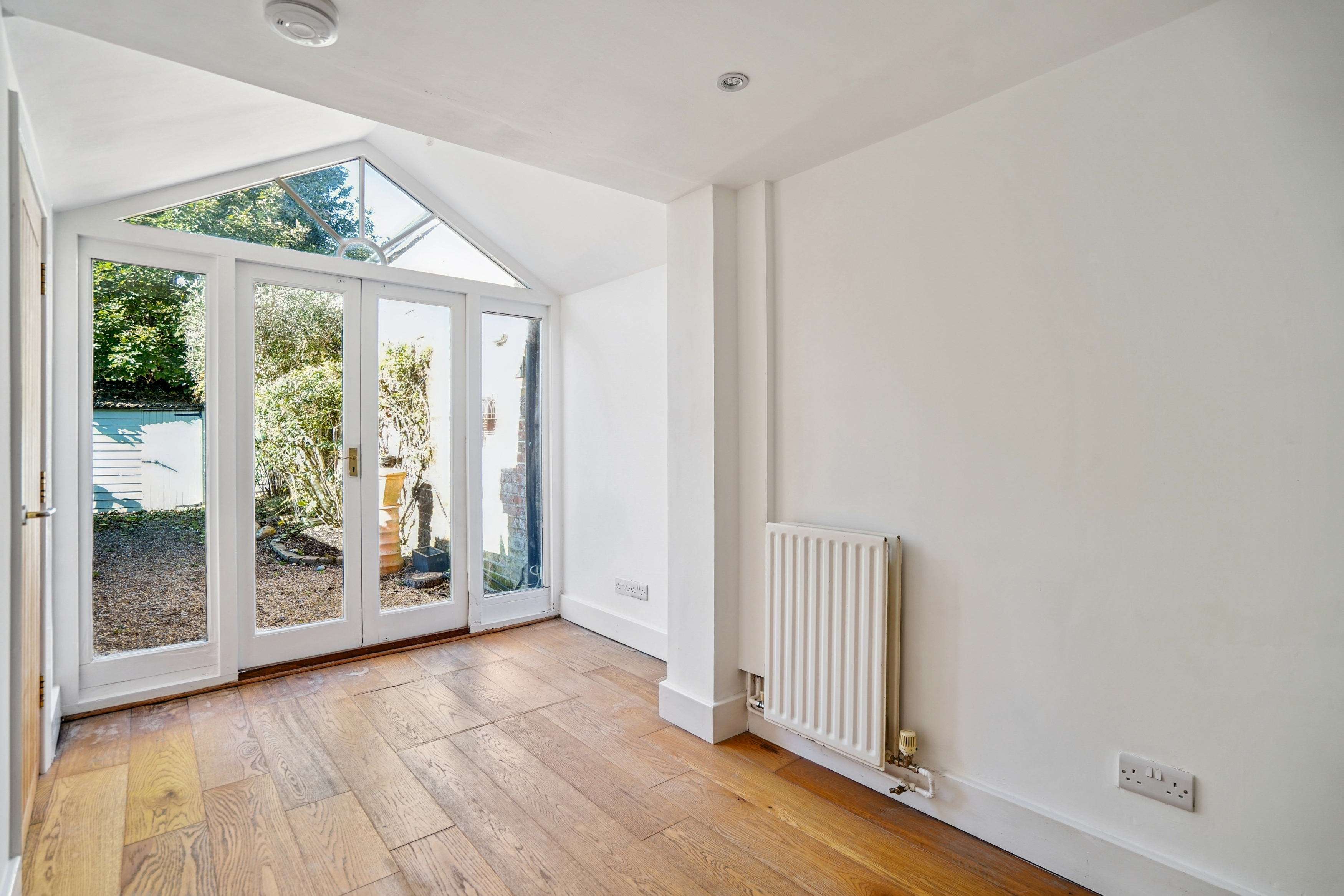 Outside, the rear garden is low-maintenance and private, with gravelled areas, raised beds, and mature trees providing natural screening. A small patio area offers space for seating, and there's a useful storage shed at the back of the garden.