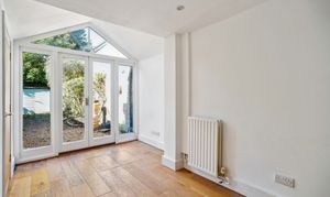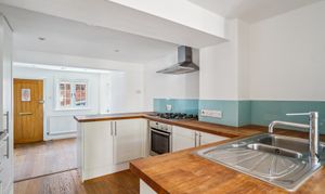 There is also a convenient under-stairs storage cupboard with plumbing for a washing machine, and an additional door providing direct access to the garden and stairs to the first floor.