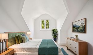 Stairs rise to the second floor, which features a spacious double bedroom and access to loft storage.