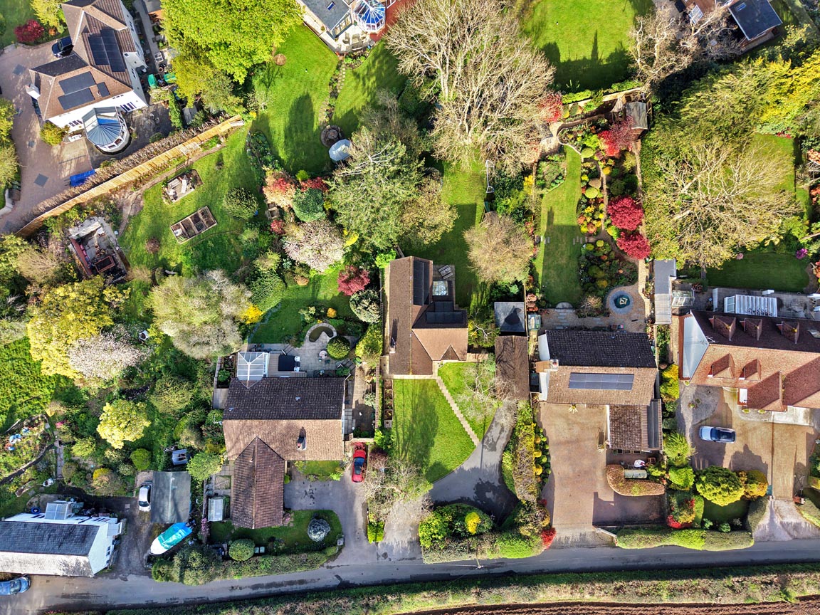 STEP OUTSIDE: Set within a generous and private plot, Bramley House enjoys a peaceful, semi-rural setting, enclosed by mature hedging that provides both privacy and a picturesque outlook. A substantial driveway offers parking for multiple vehicles and leads to a garage, currently utilised as a storage and recreational space. The front garden is attractively laid to lawn and thoughtfully planted with pear and plum trees alongside established vegetable beds, creating a charming and productive outdoor environment. The property is set well back from the road, enhancing its sense of tranquillity and exclusivity, with gated access to both sides. To the rear, the landscaped garden has been designed with both relaxation and entertaining in mind. A generous patio area sits directly off the main living space, offering the perfect setting for al fresco dining and seamless indoor-outdoor living. Beyond, the garden is predominantly laid to lawn, bordered by mature trees and shrubs, creating a wonderfully secluded and private setting. A pathway leads to the garage and an exceptional outdoor office — fully insulated and equipped with power and lighting. Overlooking the garden, this versatile space is ideal for home working, creative pursuits, or leisure use. Additional features include EV charging point,solar panels, an air source heat pump and a Tesla battery (available by separate negotiation), reflecting the home’s forward-thinking approach to energy efficiency.