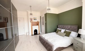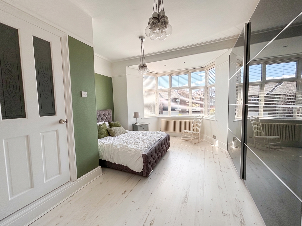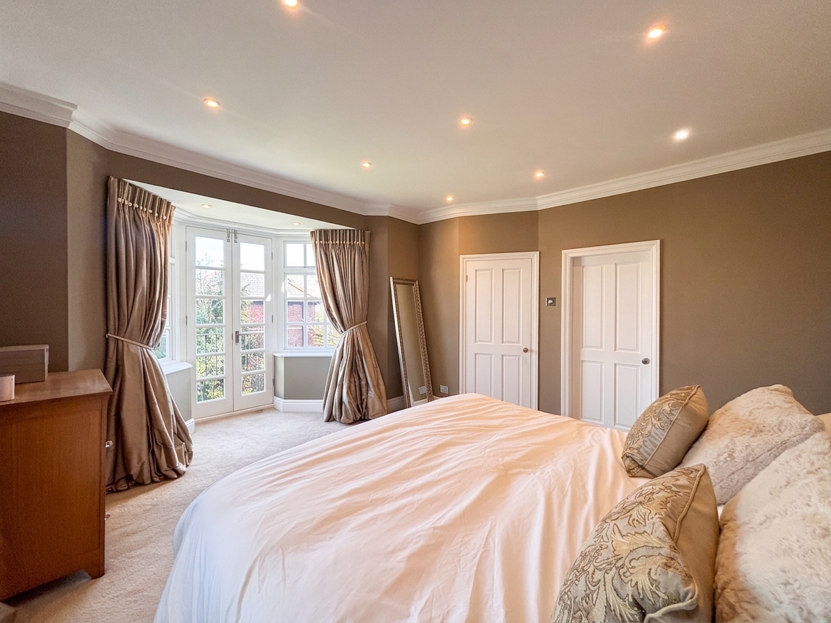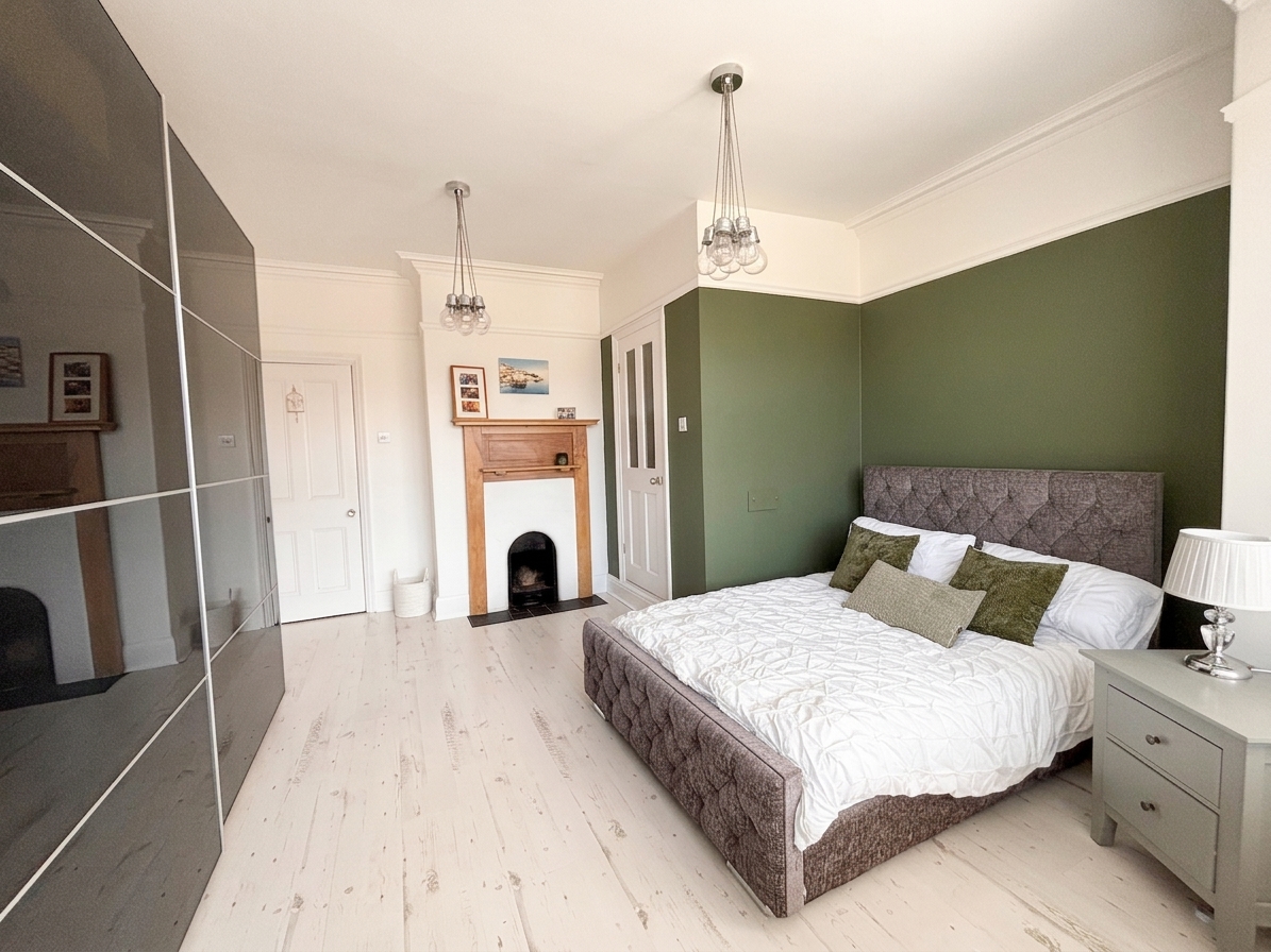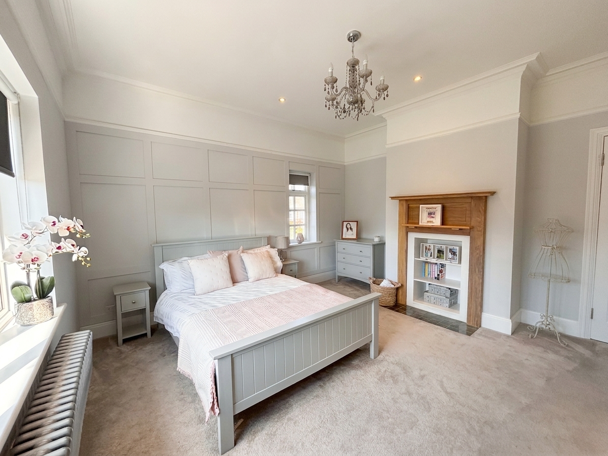 Bay window to the front elevation with fitted plantation shutters. Sky lantern. Windows to the side and front elevation. T.V point. Ceiling coving. Solid wood flooring.
