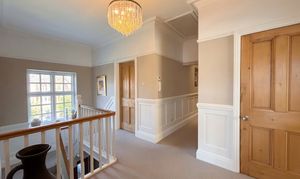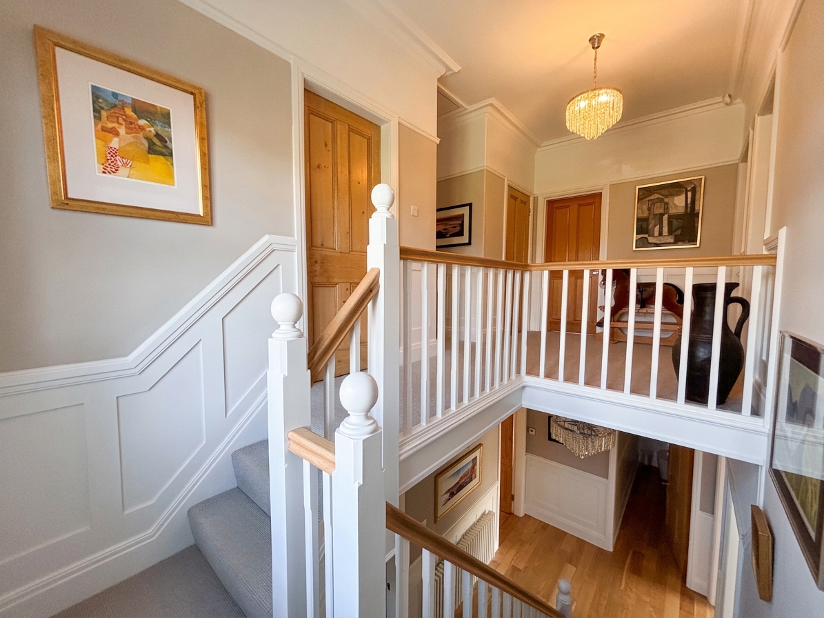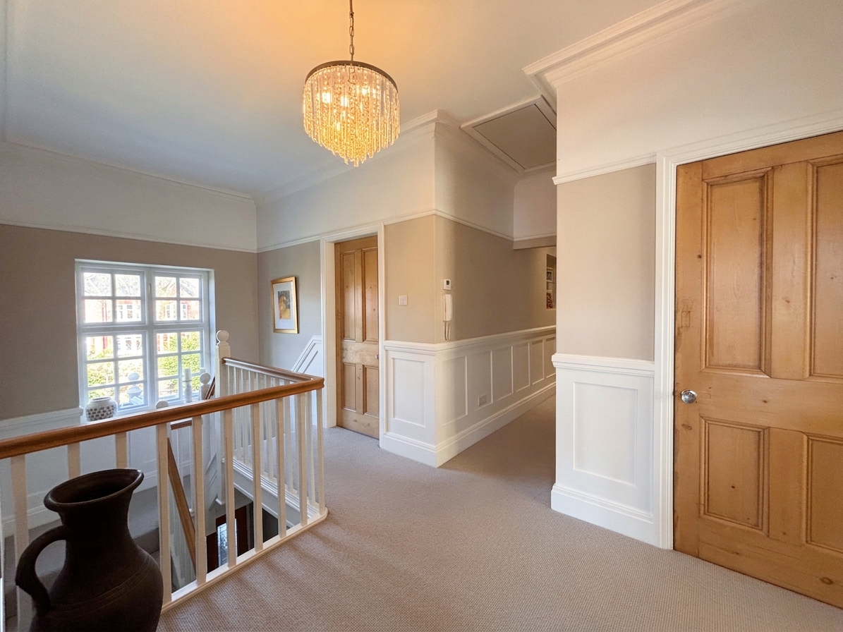 Window to the side elevation. Spindle balustrade. Feature wall paneling. Picture rail. Ceiling coving. Loft access hatch complete with pull down ladder leading to a boarded loft space. Original internal doors lead through to: