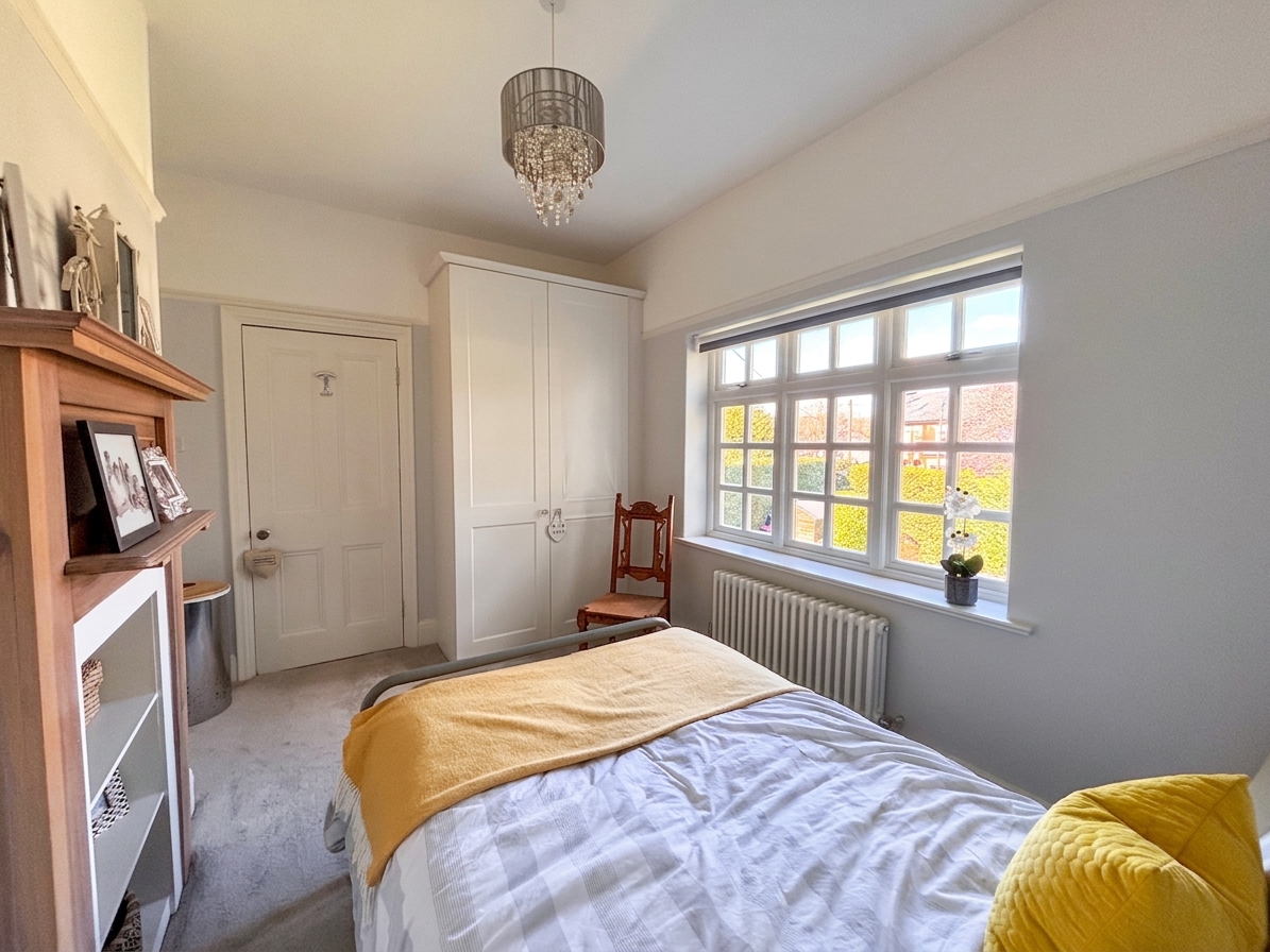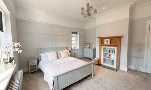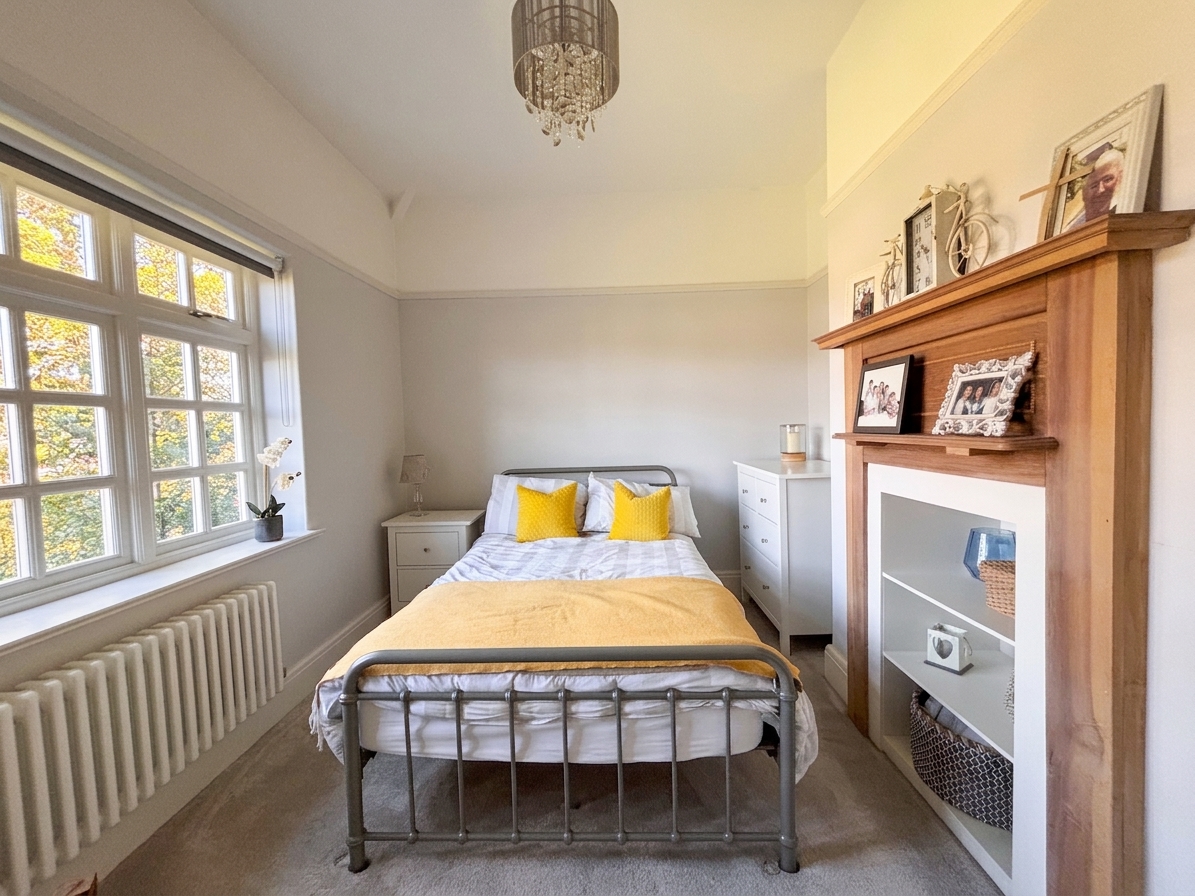 Dual aspect with a window to the side and front elevation. Feature wall paneling. Picture rail. Original feature fire surround.