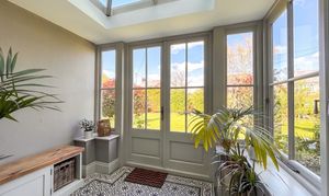 French doors to the side elevation. Windows to the side and rear elevations. Sky lantern. Detailed tiled floor. Internal door leads through to: