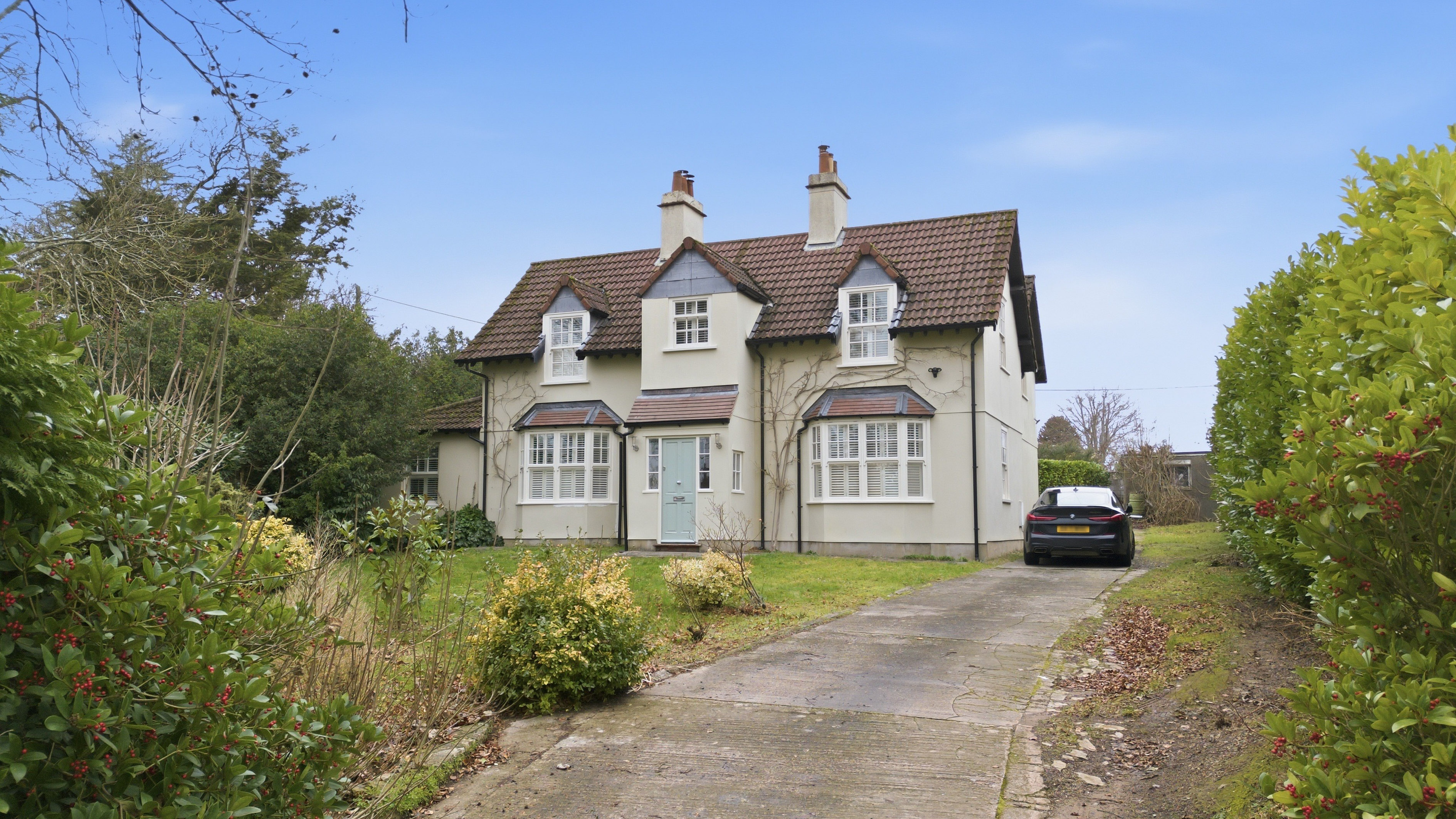 Hill Cottage is a beautifully modernised and substantially extended detached residence, enjoying far-reaching countryside views. Dating from the early 1900s, the property has been comprehensively renovated by the current owners, with significant works completed in 2010 to create a spacious and contemporary family home. Most rooms enjoy a dual aspect, allowing for an abundance of natural light, with traditional handmade cornicing enhancing the main reception rooms.