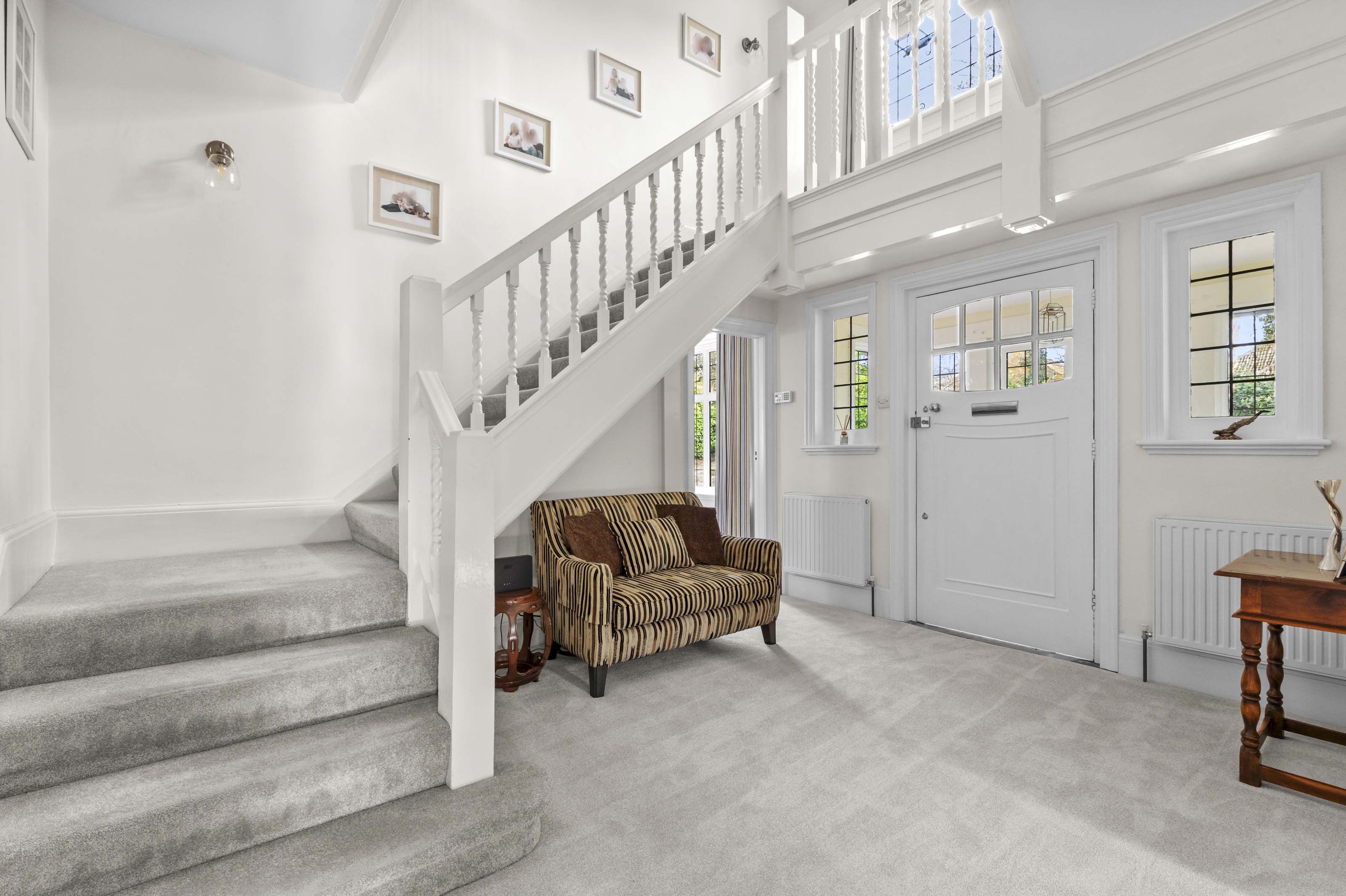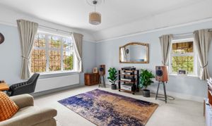 On the first floor is the generous double aspect main bedroom, which has a large ensuite shower room. There are three further bedrooms and a well-appointed family bathroom. A staircase leads off the rear landing up to Bedroom five, which also gives access to the large loft space.