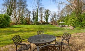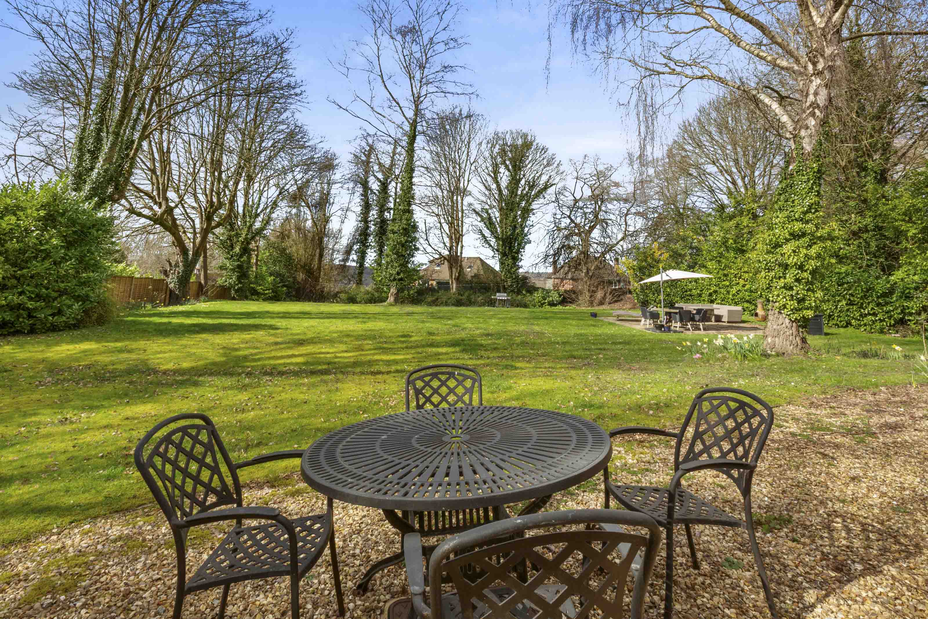 To the front is a gravel ‘in and out’ carriageway, with plenty of parking and turning space; leading on to the large garage block. At the rear is a courtyard area and an outside wc, off the main terrace. The garden is simply wonderful for the growing family, laid predominantly to lawn with mature shrubs, bushes and trees.