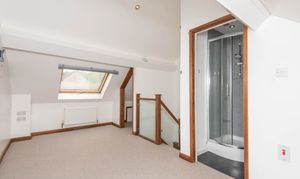 Ascend the stairs to discover the principal bedroom, complete with an en-suite shower room for added convenience and privacy. The modern fitted bathroom is a sanctuary in itself, featuring a corner shower and a luxurious free-standing bath to unwind in after a long day.