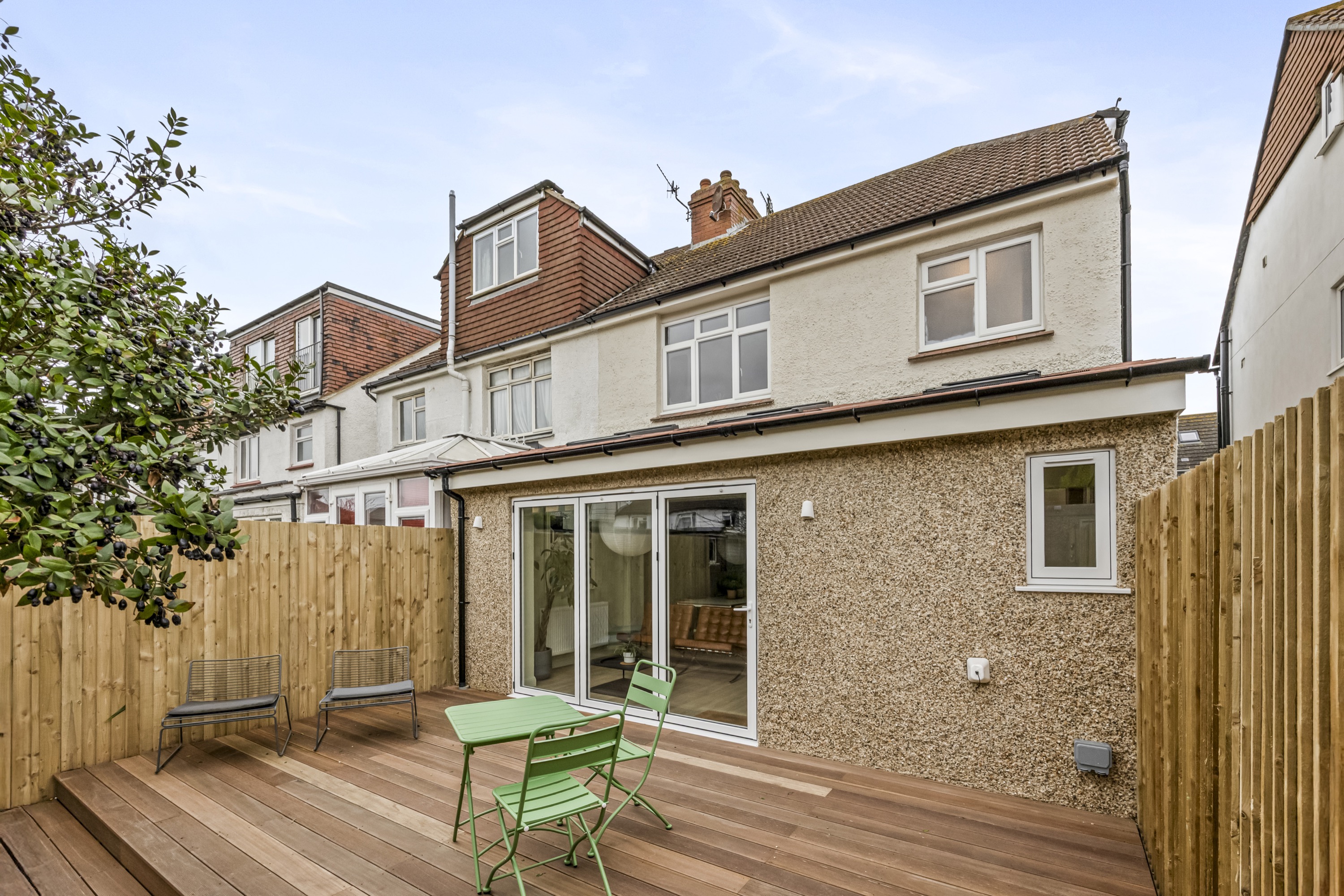 This superb three bedroom semi detached 1930’s home is offered to the market with no onward chain and is situated in a highly sought after Hove location, just a short walk from Hove seafront and a range of local amenities. Recently renovated to an exceptional standard throughout, the property blends an array of different colours with contemporary design, creating a stylish and comfortable living environment. The spacious entrance hall leads to a bright and airy living room, which is perfect for relaxing or entertaining guests. The heart of the home is the beautifully designed modern fitted kitchen, offering ample storage and high quality appliances, which flows seamlessly into the dining area. Bi fold doors open out from the dining space to a decked area, providing an ideal setting for indoor-outdoor living. Upstairs, there are three well proportioned bedrooms, including a generous rear bedroom that benefits from built in wardrobes for convenient storage. The family bathroom is finished to a high specification, featuring elegant fixtures and fittings. The property also offers off road parking and a garage (providing additional storage or secure parking), further enhancing its appeal for families and professionals alike. There is potential to extend the property, subject to the necessary planning permissions, allowing buyers to further tailor the space to suit their needs. With its blend of charm, modern finishes and prime location in Hove, this home presents a fantastic opportunity for those seeking a move-in ready property with scope for future growth. Early viewing is highly recommended to appreciate the quality and lifestyle on offer.