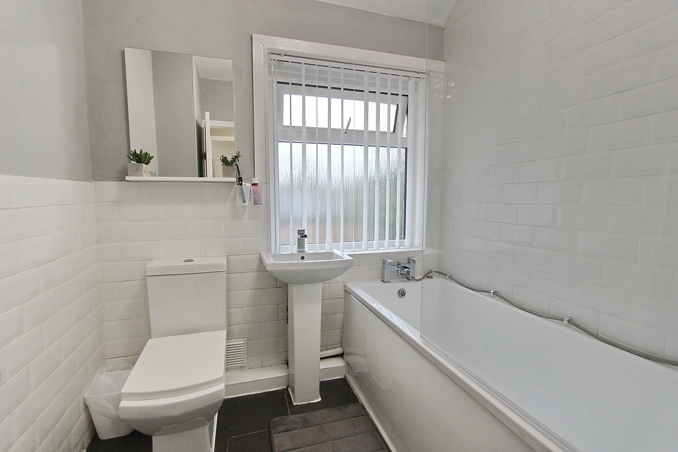 The landing gives loft access. The master bedroom is a large double room with a large deep built in wardrobe/storage and carpeted flooring. The second large double bedroom also has built in wardrobe/storage cupboard and carpeted flooring. The fitted bathroom incorporates a panelled bath with shower, low level WC and wash hand basin, tiled flooring and a heated chrome towel rail/radiator.
