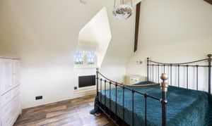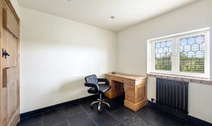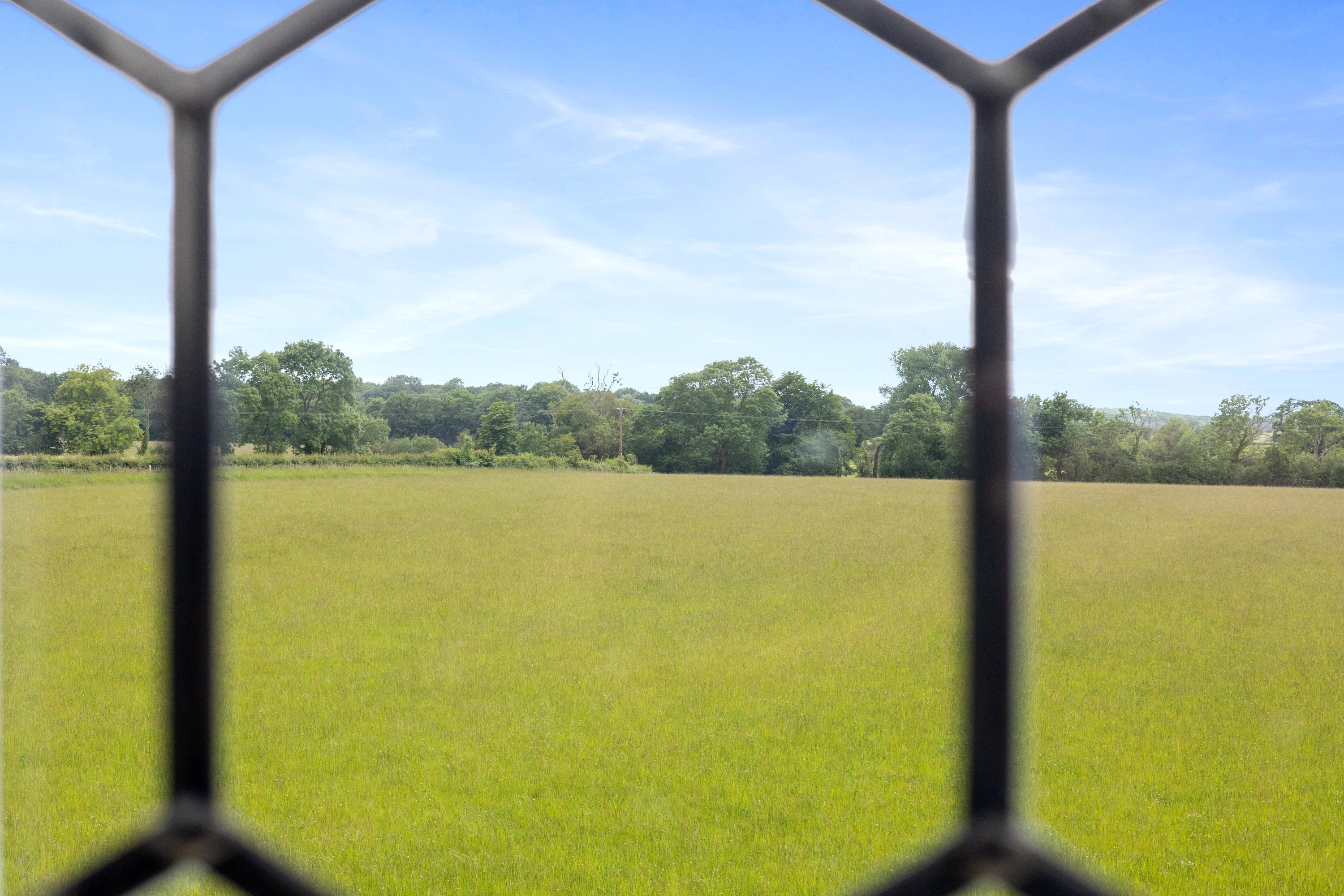 The entrance hall has stairs rising to the first floor, with a meter cupboard, understairs cupboard and a downstairs wheelchair accessible cloakroom with wash hand basin. Also on the ground floor there is a bedroom which could be used as an office with field land views to the rear of the house. The spacious living room has a feature fireplace and kitchen dining room has units, space for range oven, washing machine and fridge freezer and an island work station. Off the kitchen there is a boot room leading to the rear garden.