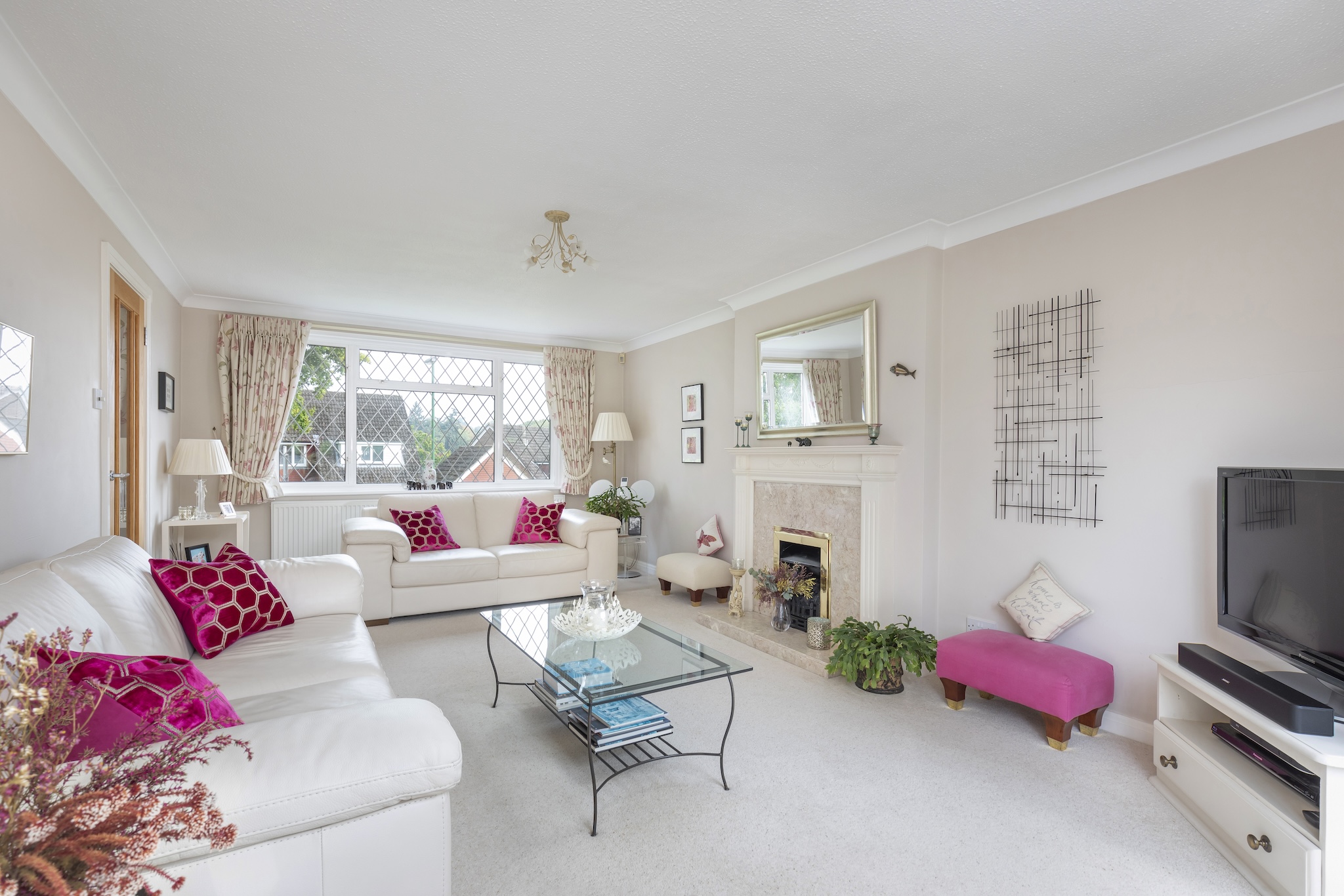 The spacious sitting room enjoys excellent natural light from both front and rear aspects, with large windows and sliding patio doors opening directly onto the garden. A feature marble fireplace provides an elegant focal point, making this the perfect space to relax with family or entertain guests.