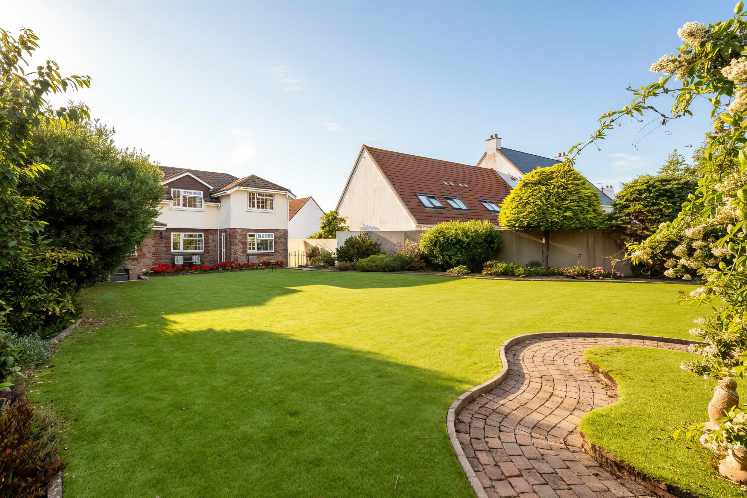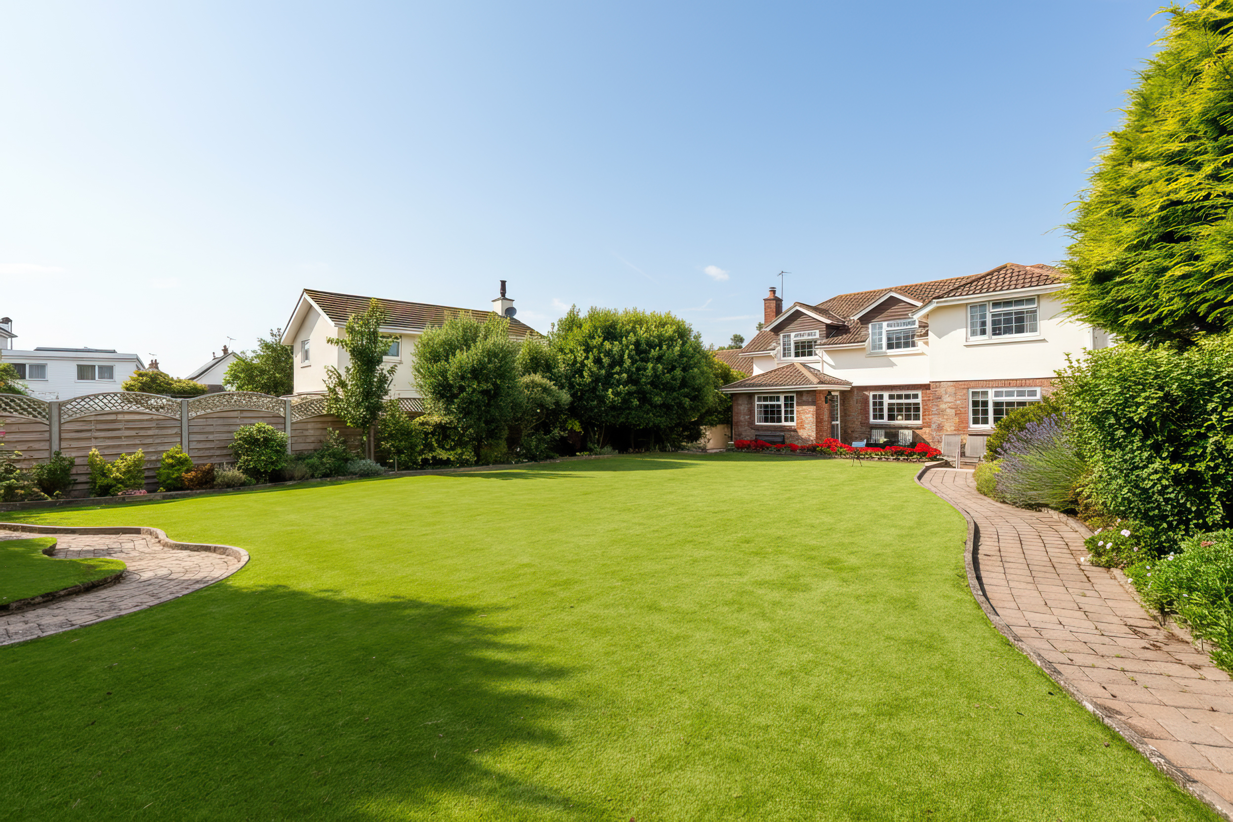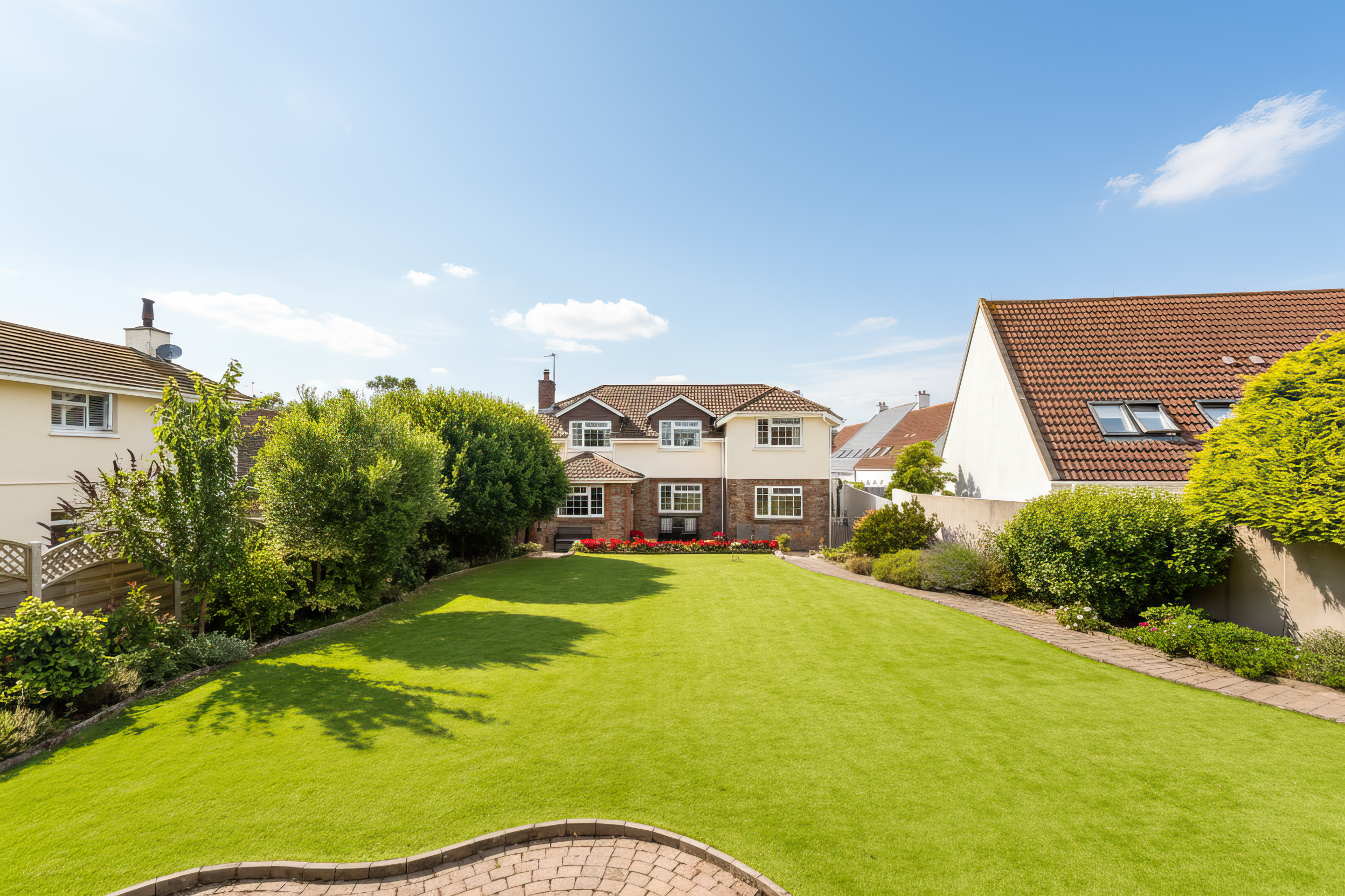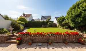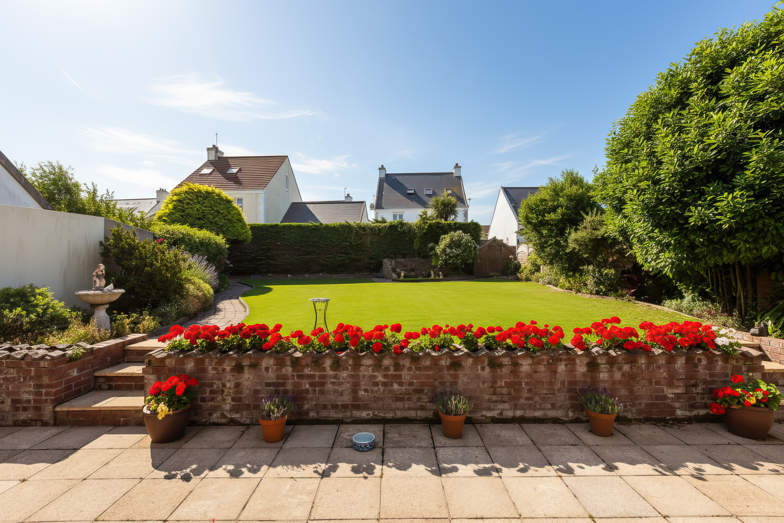 Beautifully maintained south-facing garden with a variety of mature plant borders, creating a tranquil and sunny outdoor space.