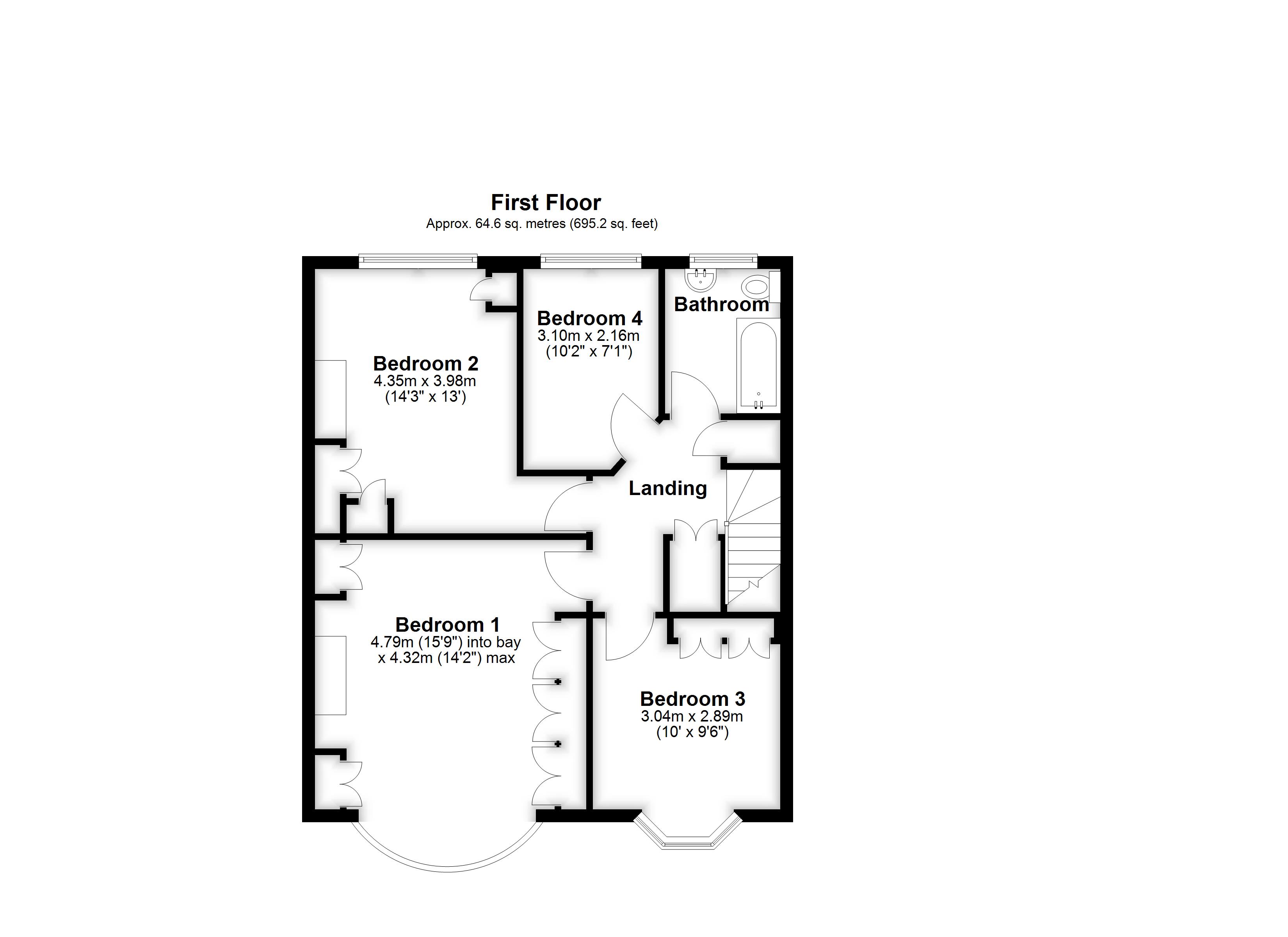 Bedroom 1 4.79m (15'9") into bay x 4.32m (14'2") max