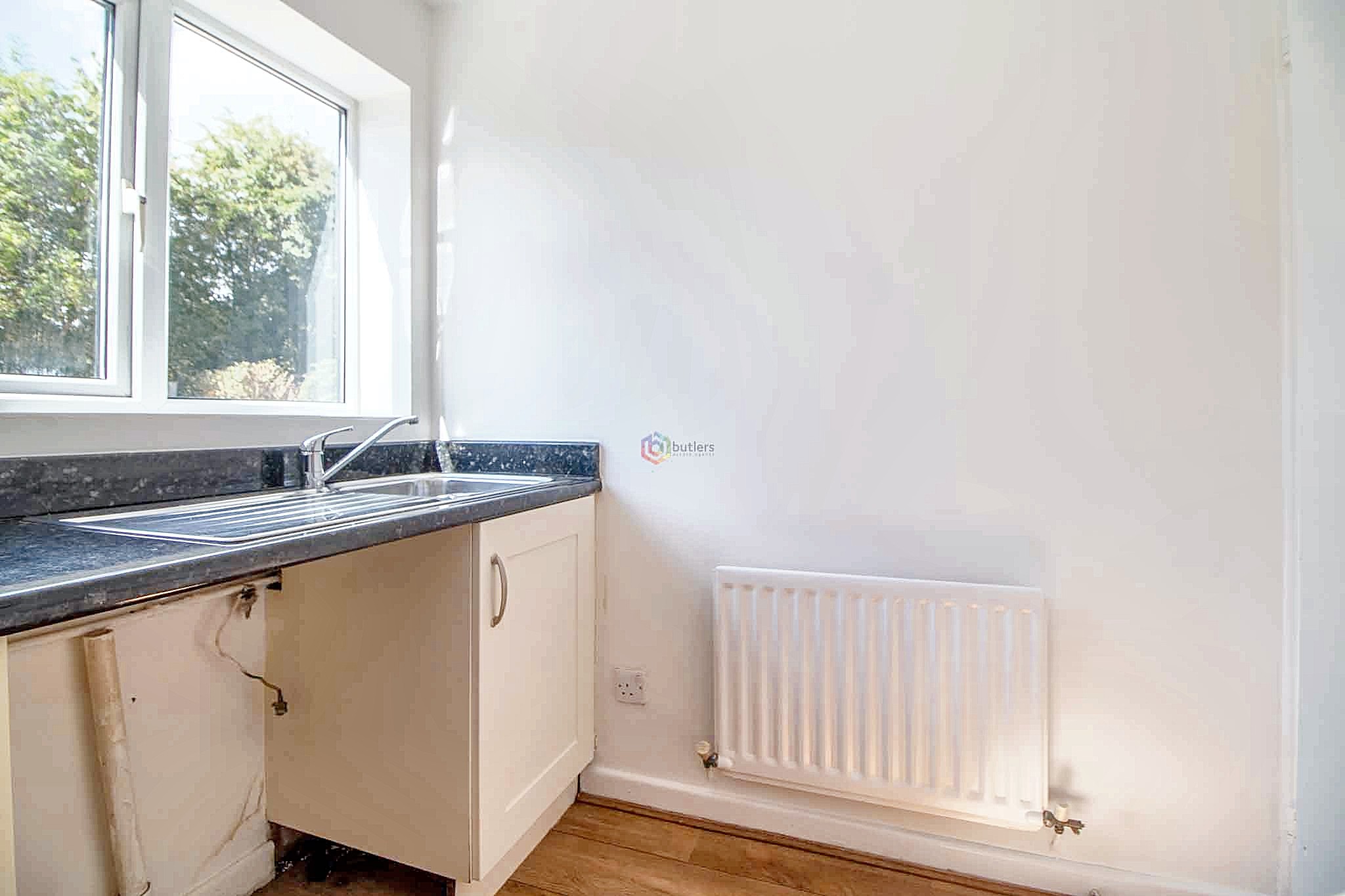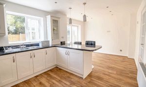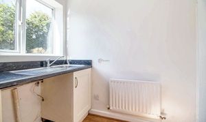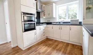Fitted with further units and worksurface with space for under-counter appliances, there is a sink beneath the window overlooking the rear garden. The boiler is wall mounted next to the external door which leads to the side of the house.