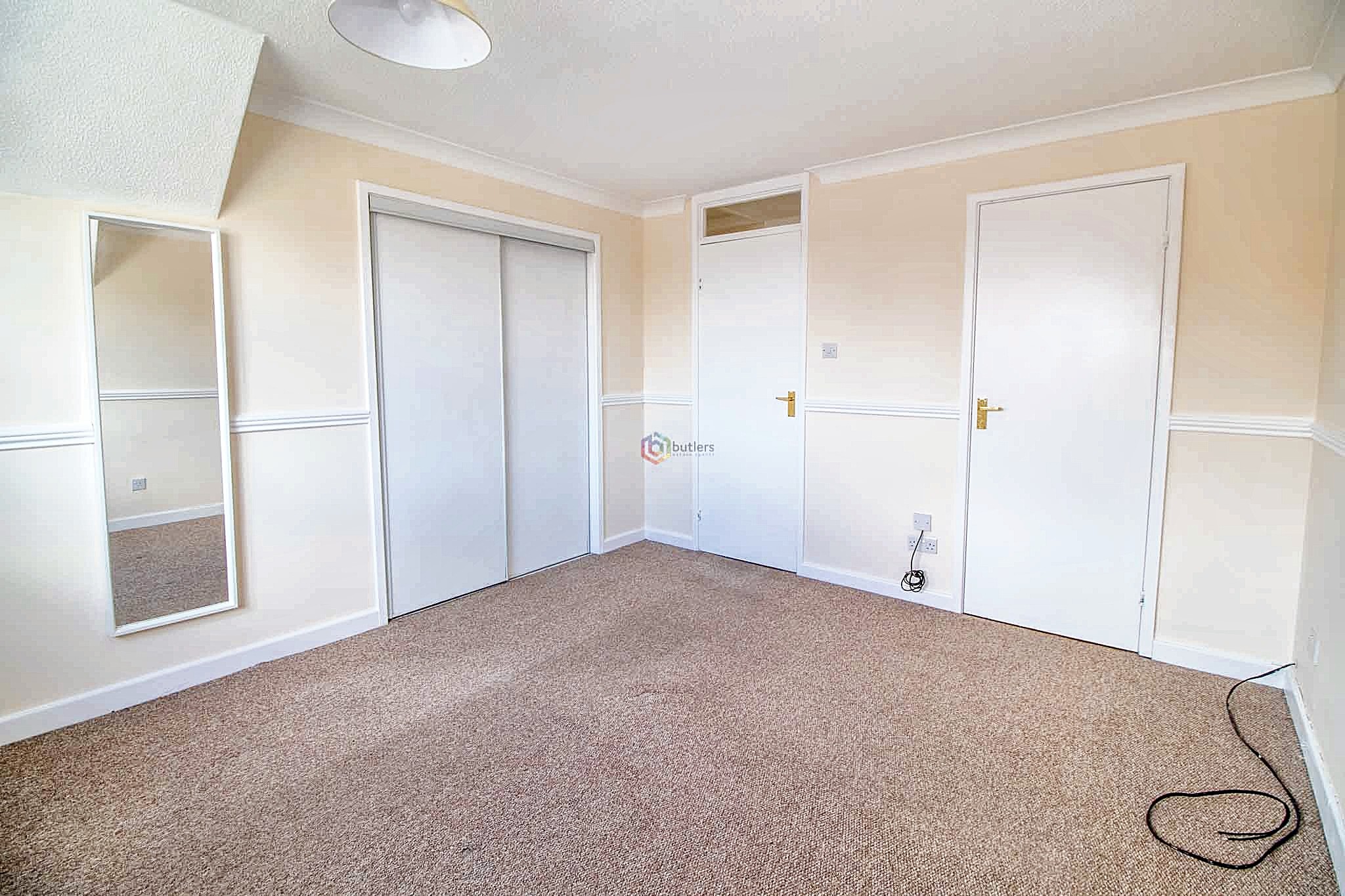 A generous bedroom with a UPVC window to the front, a large built-in wardrobe and a door to the en-suite.