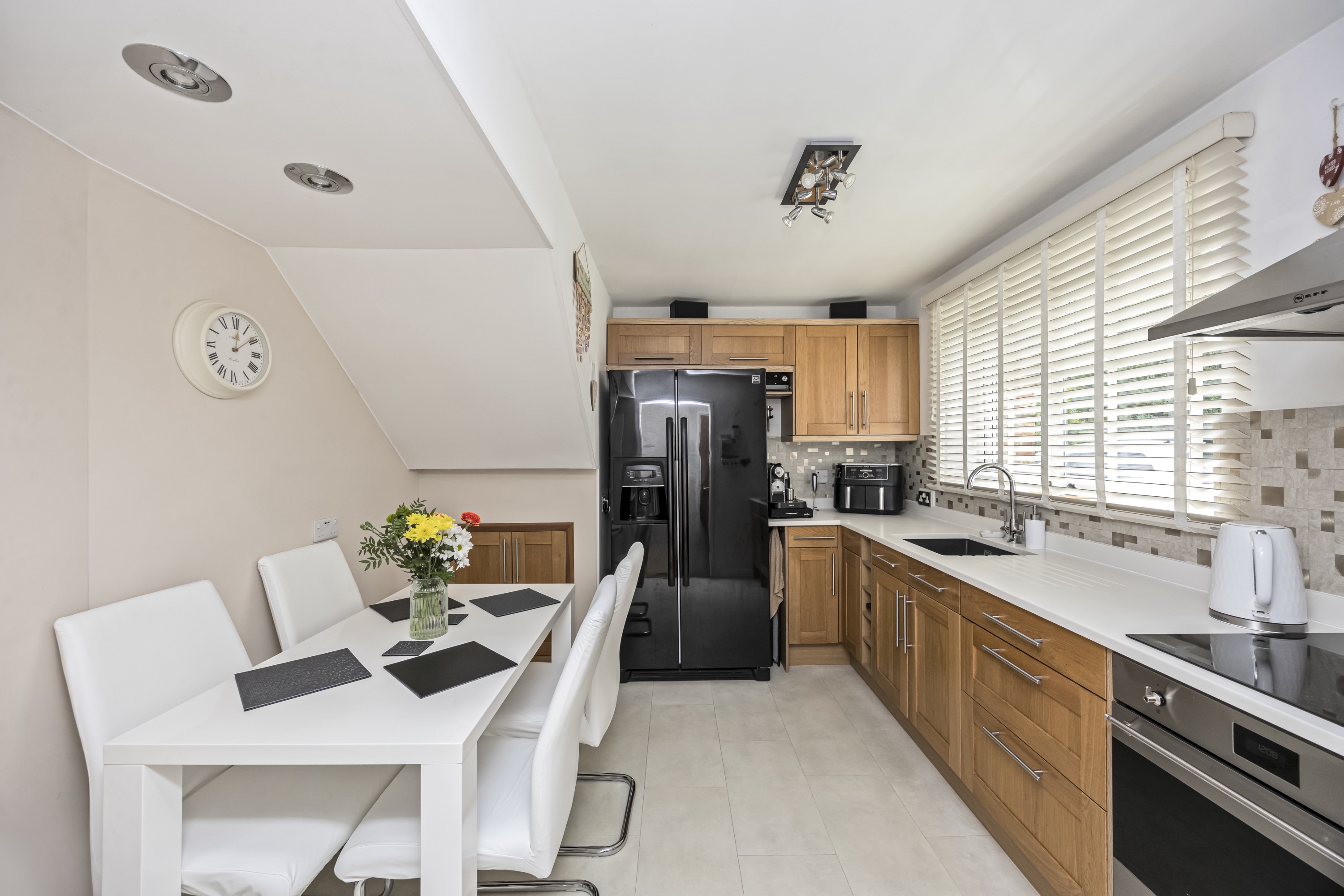 The ground floor features a welcoming entrance hall, a bright and airy living room, with log burner and a separate dining area that is ideal for entertaining or family meals.