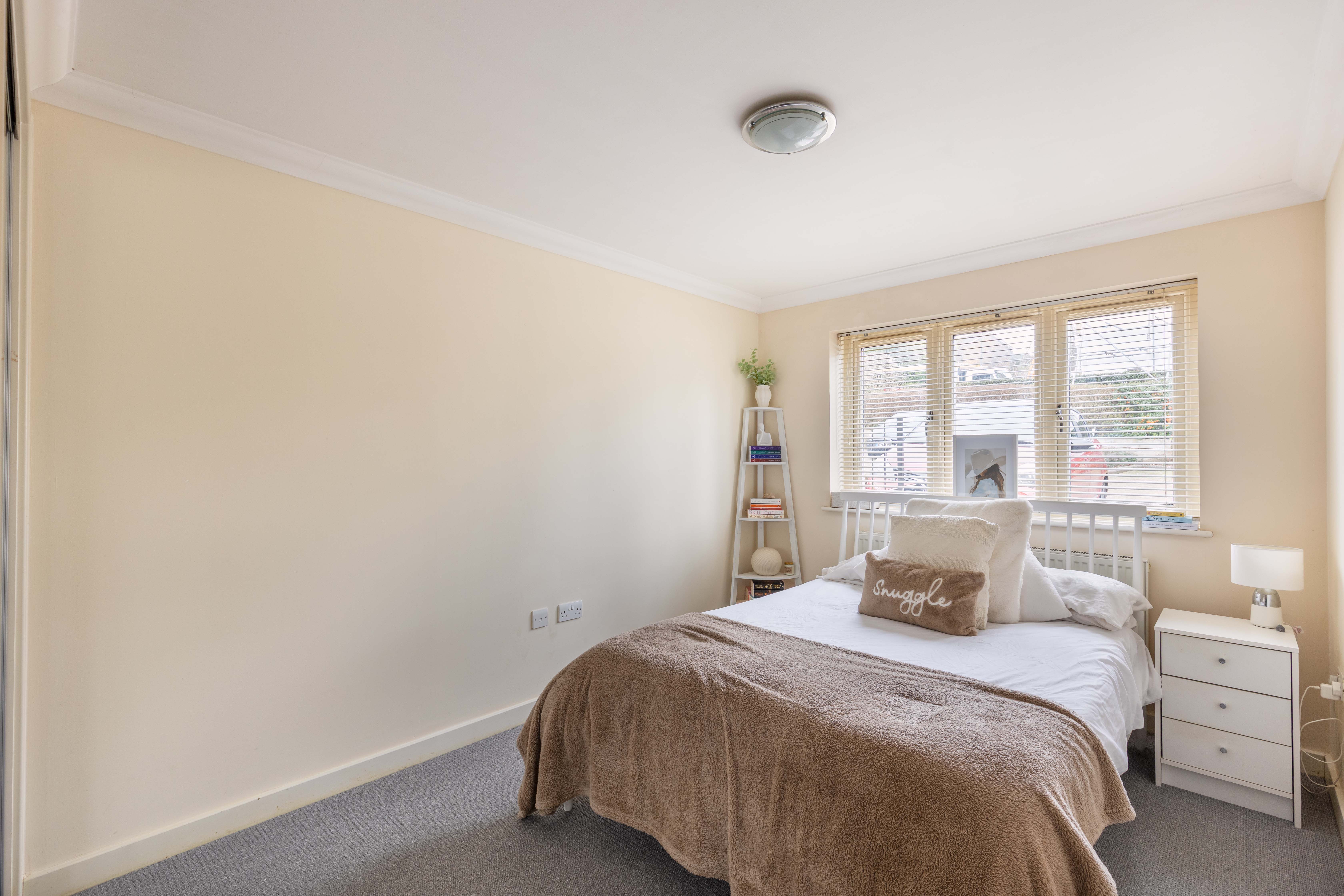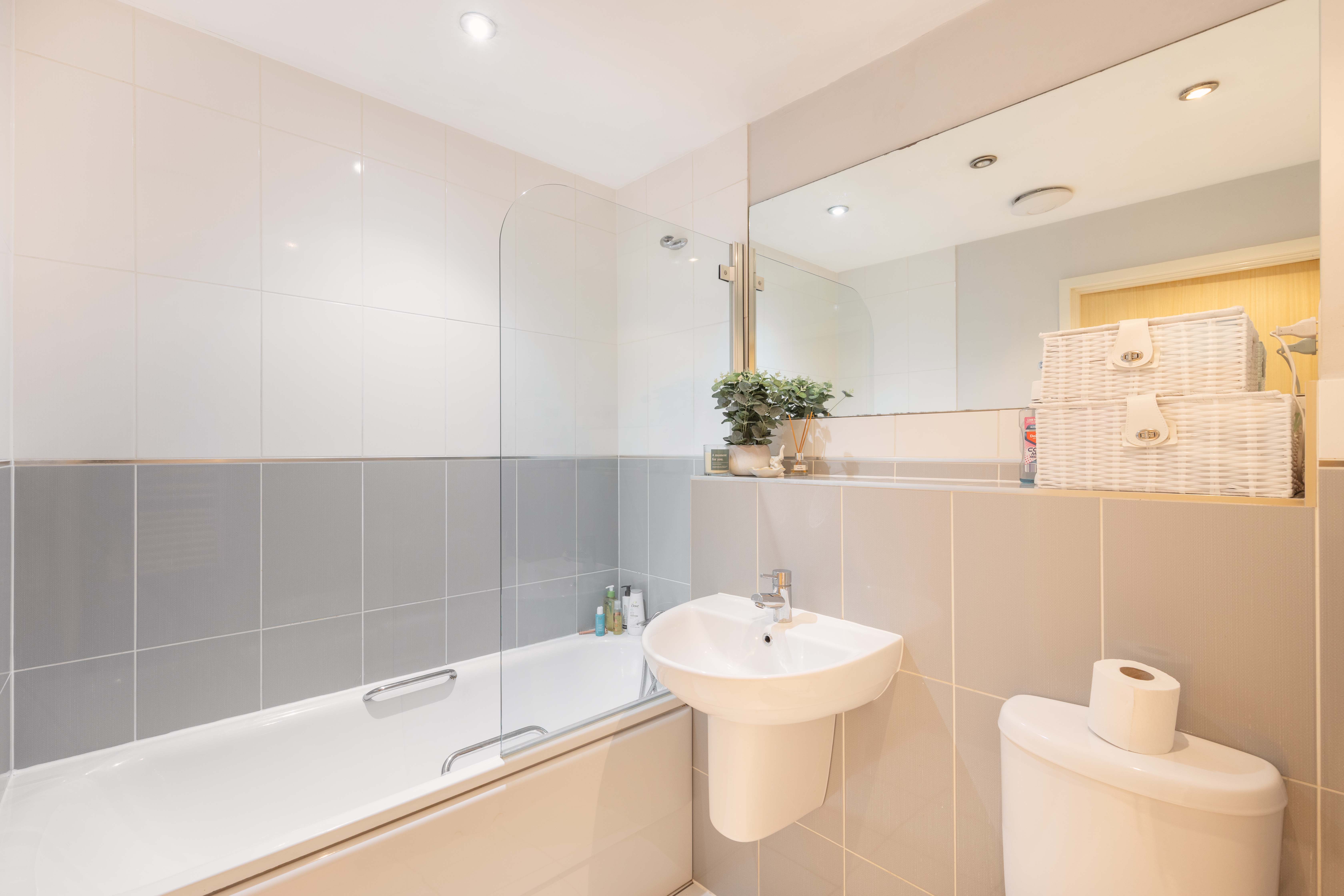 The double bedroom is a good size and benefits from fitted wardrobes, providing excellent storage, and it is served by a spacious and contemporary bathroom, complete with a bath and overhead shower, washbasin, and toilet.